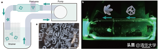 DISH技术的打印容器只需具备一个光学平面即可,无需特殊设计;打印时容器保持静止,无需高精度的机械运动,大幅拓展了打印场景,尤其能直接在普通的流体管道内放置打印材料,实现流体环境中的批量、连续打印,这是传统体积三维打印技术无法完成的。