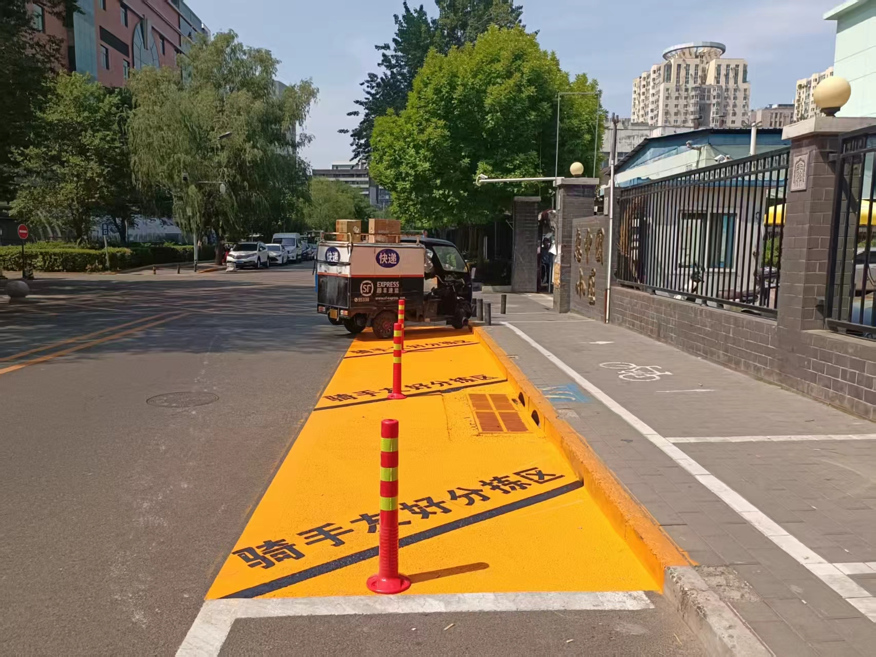 针对新就业群体“进门难、停车乱、休息缺”等痛点,小关街道整合辖区资源,推出一系列“硬核”举措。遍布辖区的友好驿站,为快递小哥、外卖骑手提供全天候休息、饮水、取暖、应急补给等服务,成为街头巷尾的暖心落脚点;一处处专属友好停车区,配送车辆即停即走、规范有序,解决新就业群体骑行停车难题;一张张友好服务地图和楼门指引,清晰标注了友好驿站、商户等服务点位,让便民服务一目了然、触手可及,同时有效解决了“找路难”问题,让每一位新就业群体实现精准配送。