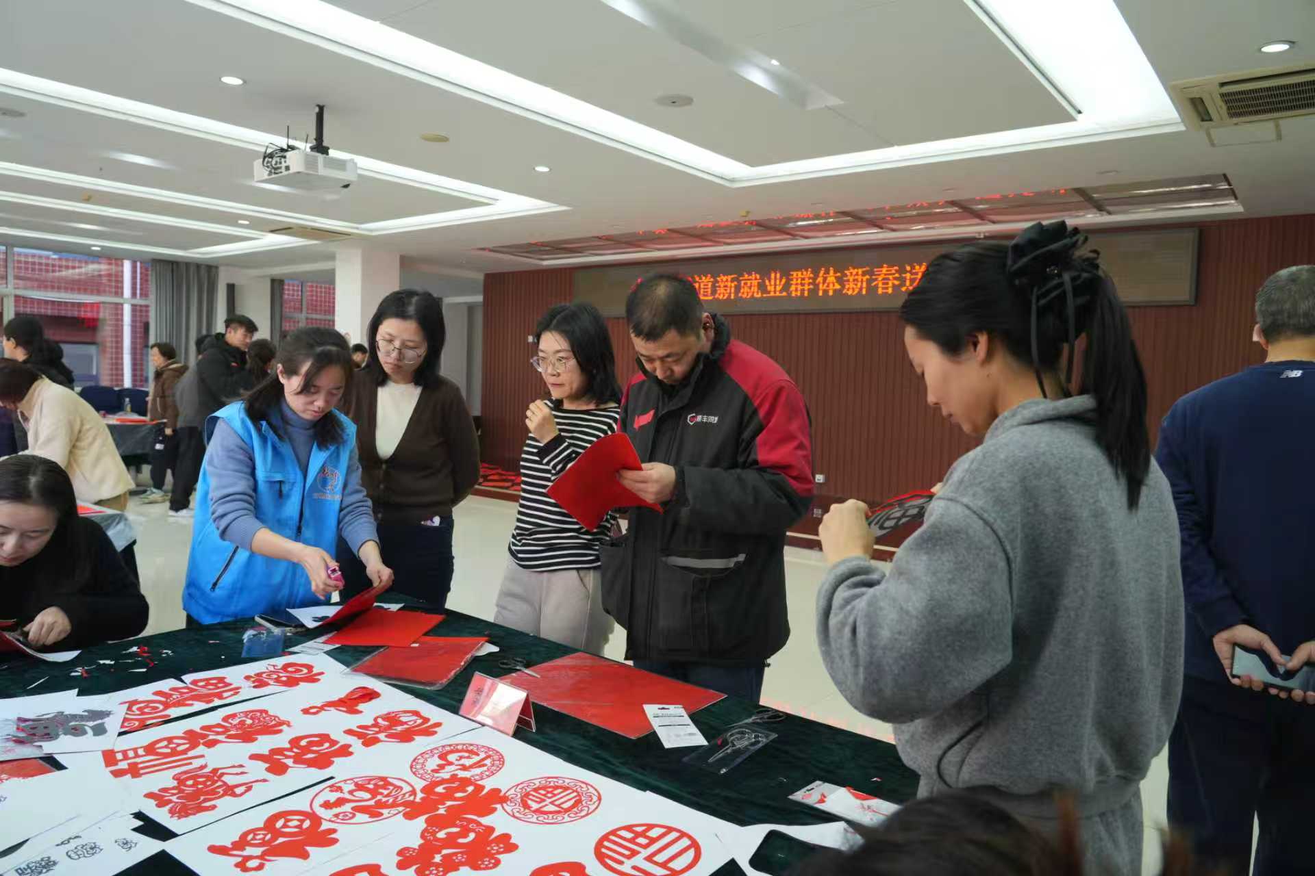 春节临近,小关街道精心举办新春送福暖“新”活动,以笔墨传情、以巧手筑暖、以礼包连心,将新春美好祝福与诚挚关怀送到新就业群体心坎上。刚刚结束配送的快递员们受邀参与其中,放下配送箱,拿起毛笔、剪刀,沉浸式体验传统民俗的魅力。