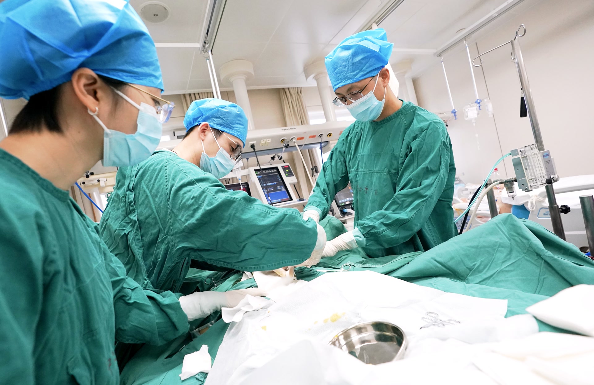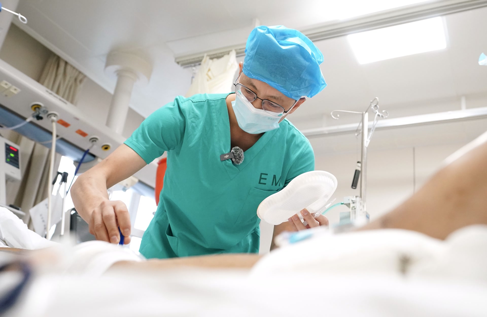 上午10时,急诊重症监护室内,急诊科副主任闫圣涛为一位患者拔除“人工肺”管路——这意味着医生将他从生死线上拉了回来。这位52岁的男性患者,一周前突发心脏骤停,历经急诊重症监护室团队7天抢救,终于转危为安。一上午,急诊重症监护室共收治7名重症患者。“急诊重症监护室都是危重患者,我们必须分秒必争。”闫圣涛说。