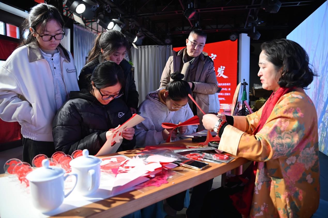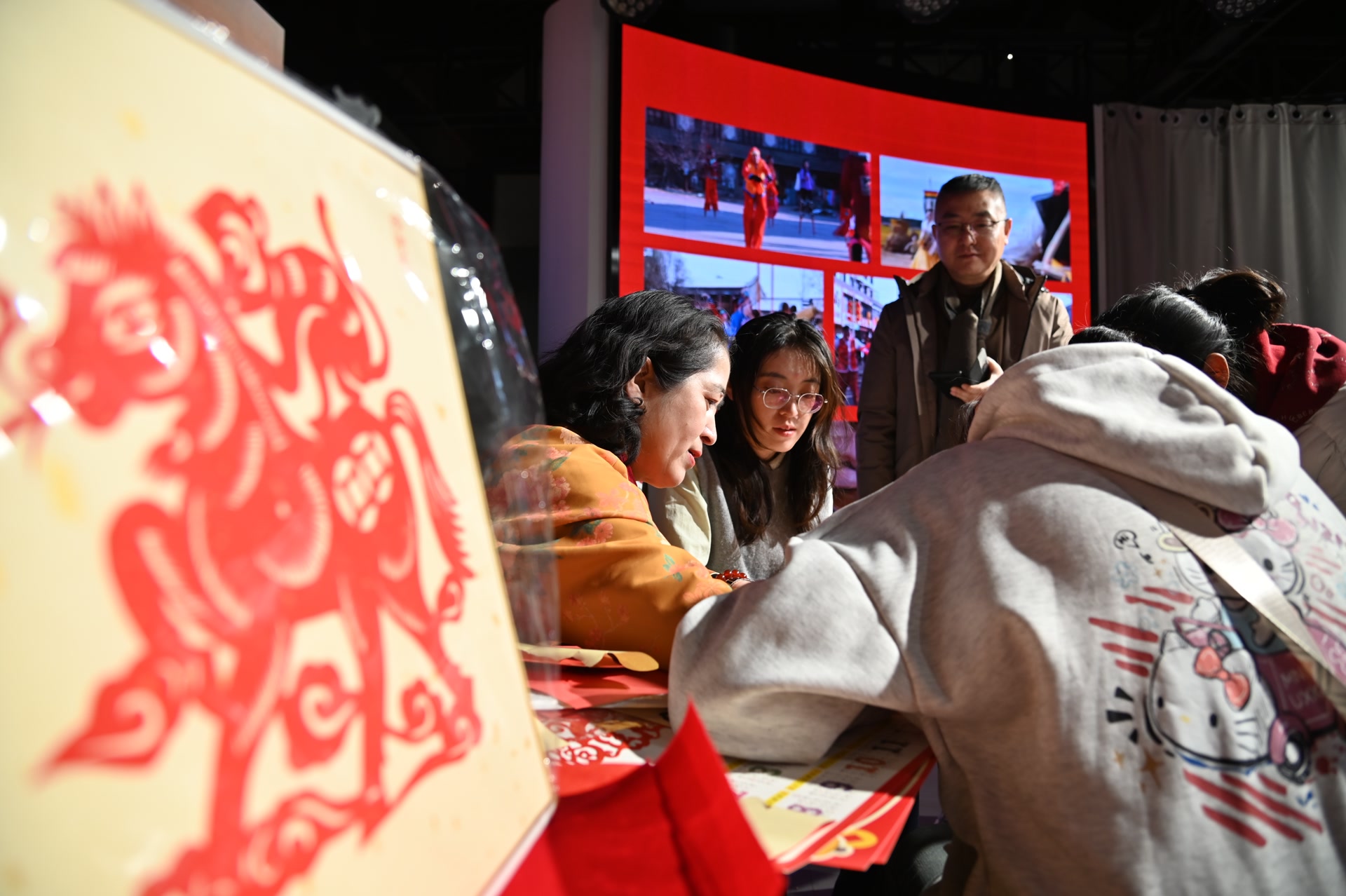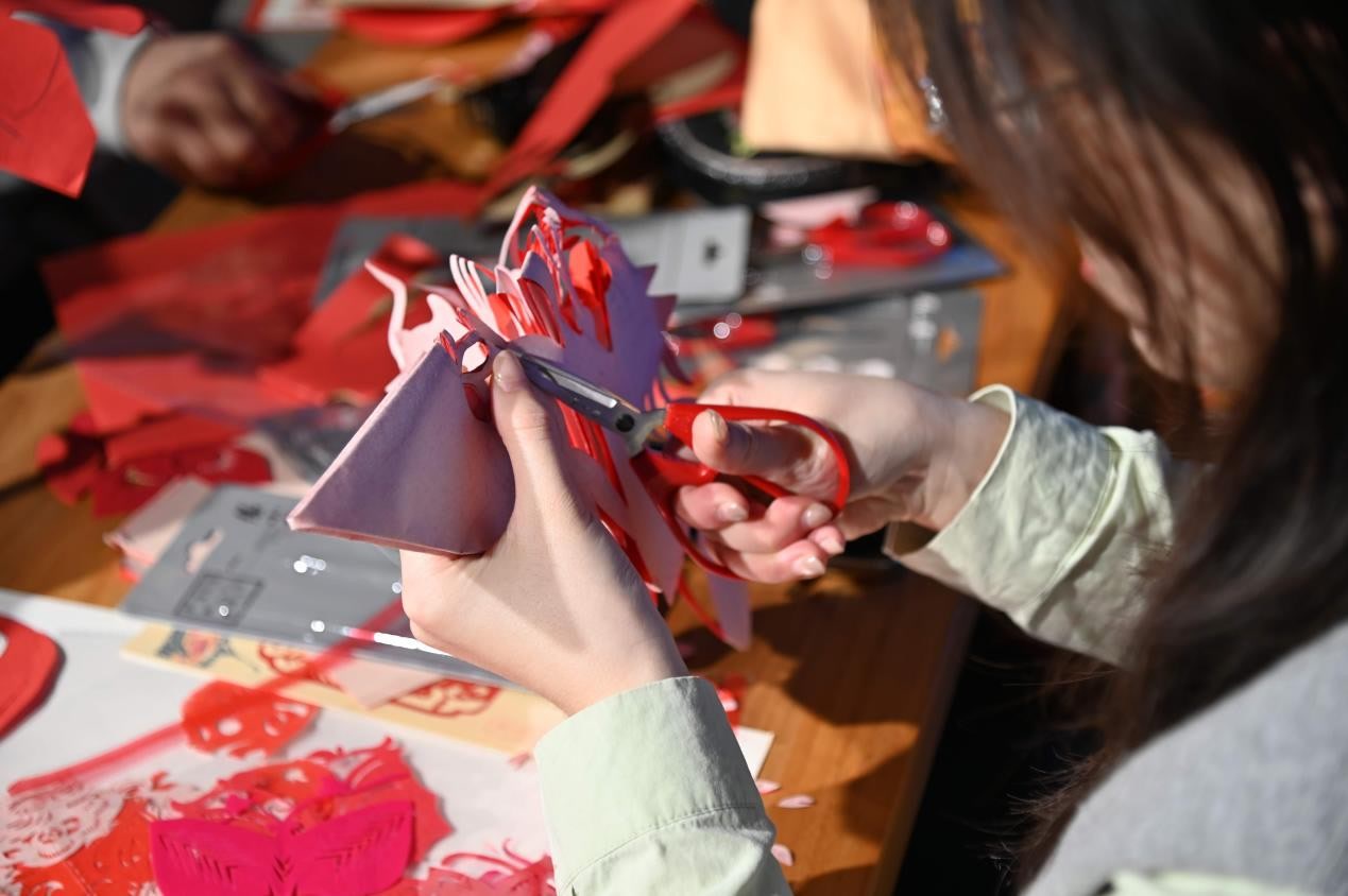 纪念馆还特邀辽皖两地剪纸名家开展非遗剪纸专场活动,长丰剪纸、庄河剪纸南北非遗同台亮相,国家一级美术师顾恩如、辽宁省“十大剪纸明星”陈莉等名家现场挥剪,以刀代笔剪刻出马年吉祥纹样与传统民俗图案,让观众在沉浸式文化体验中感受传统年俗的独特魅力。