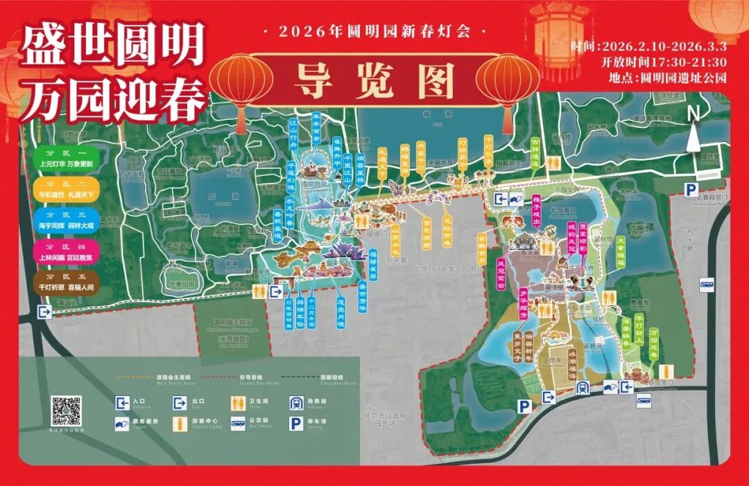 温馨提示:灯会活动期间(每日17:30-21:30)仅开放圆明园绮春园宫门(南门入口)