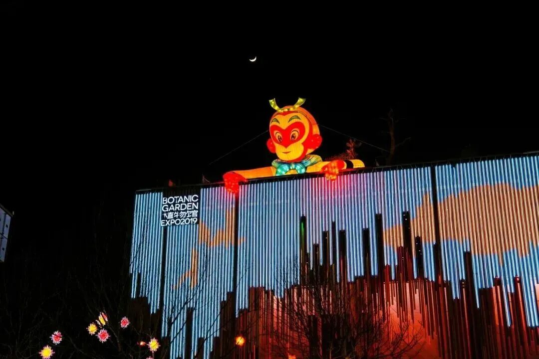 植物馆与中国馆前布设的科技灯组