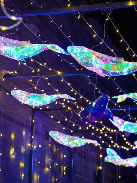 一组组流光溢彩的花灯错落分布