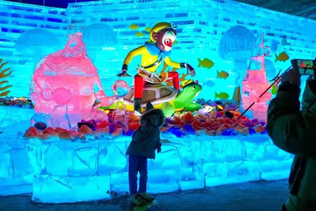 冰灯展区则将《大闹天宫》的奇幻世界