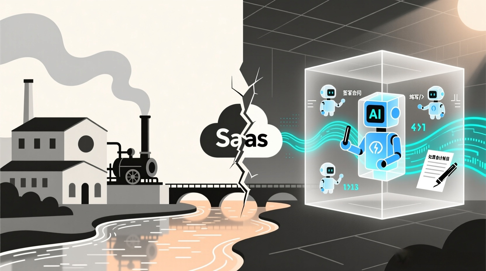 回望工业文明的每一次技术革命,本质都不是旧事物的毁灭,而是生产框架的彻底重构。就像蒸汽机从未替代水车,而是让工业生产摆脱河流的桎梏,将工厂延伸至森林、矿山与港口,重塑工业的底层逻辑;今天,AI对软件行业的冲击,是传统逻辑迎来转型。