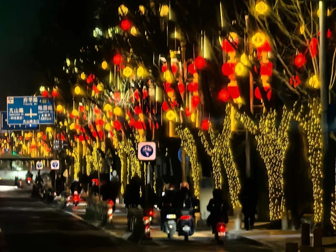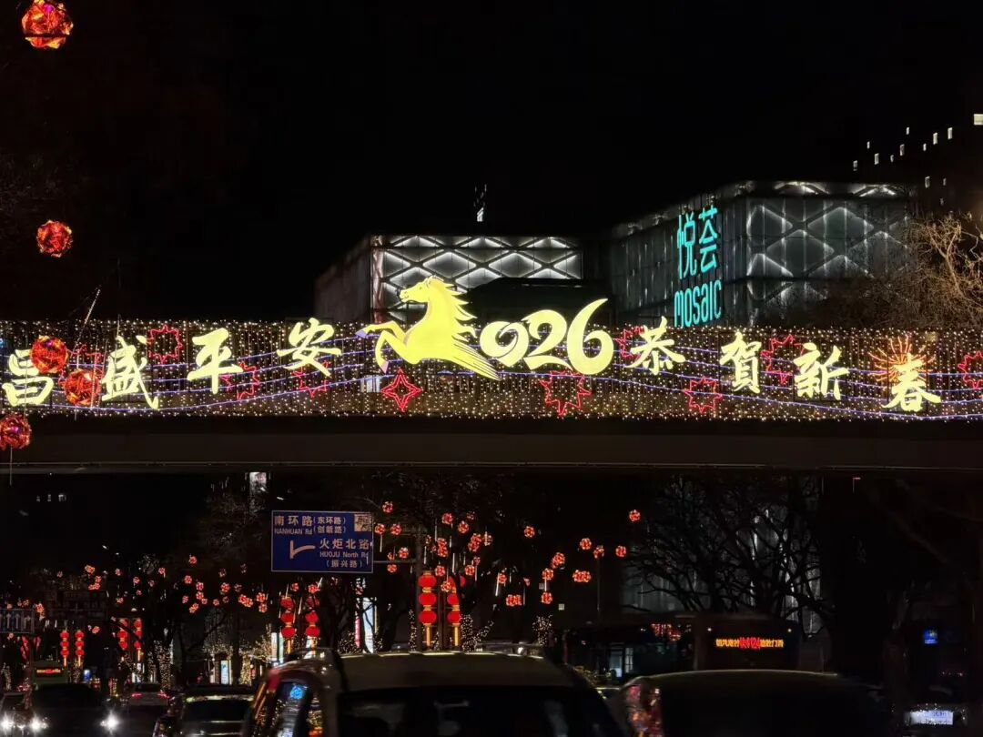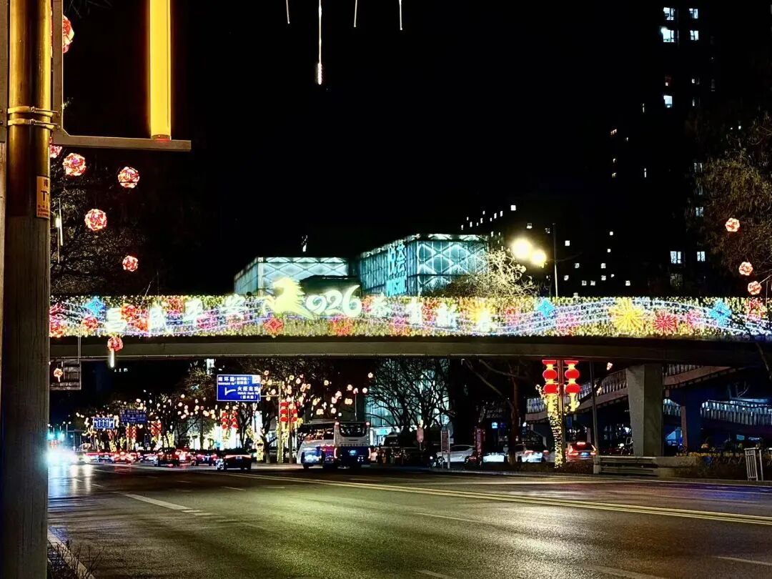 我区29个节点与29条主次干道的亮化设施全部点亮,红金配色的灯笼、中国结与灵动的马年元素交相辉映,光影交织间勾勒出浓郁的新春氛围,让市民沉浸式感受马年的春节韵味,在璀璨灯火中奔赴一场温暖的团圆之约。