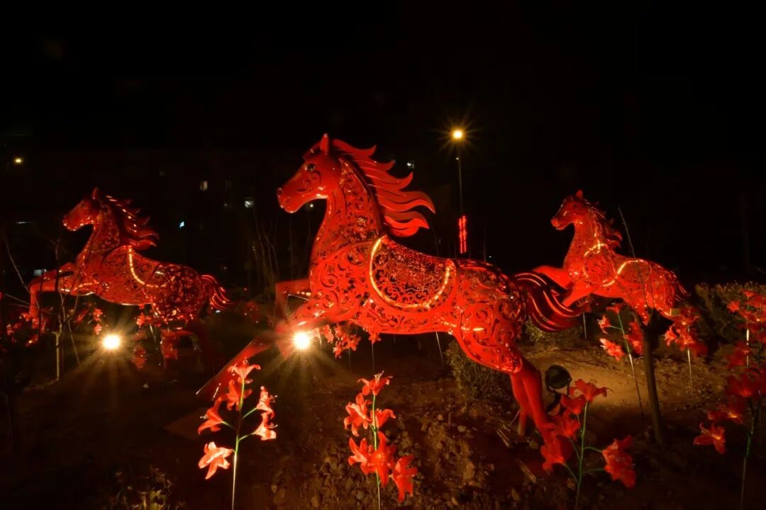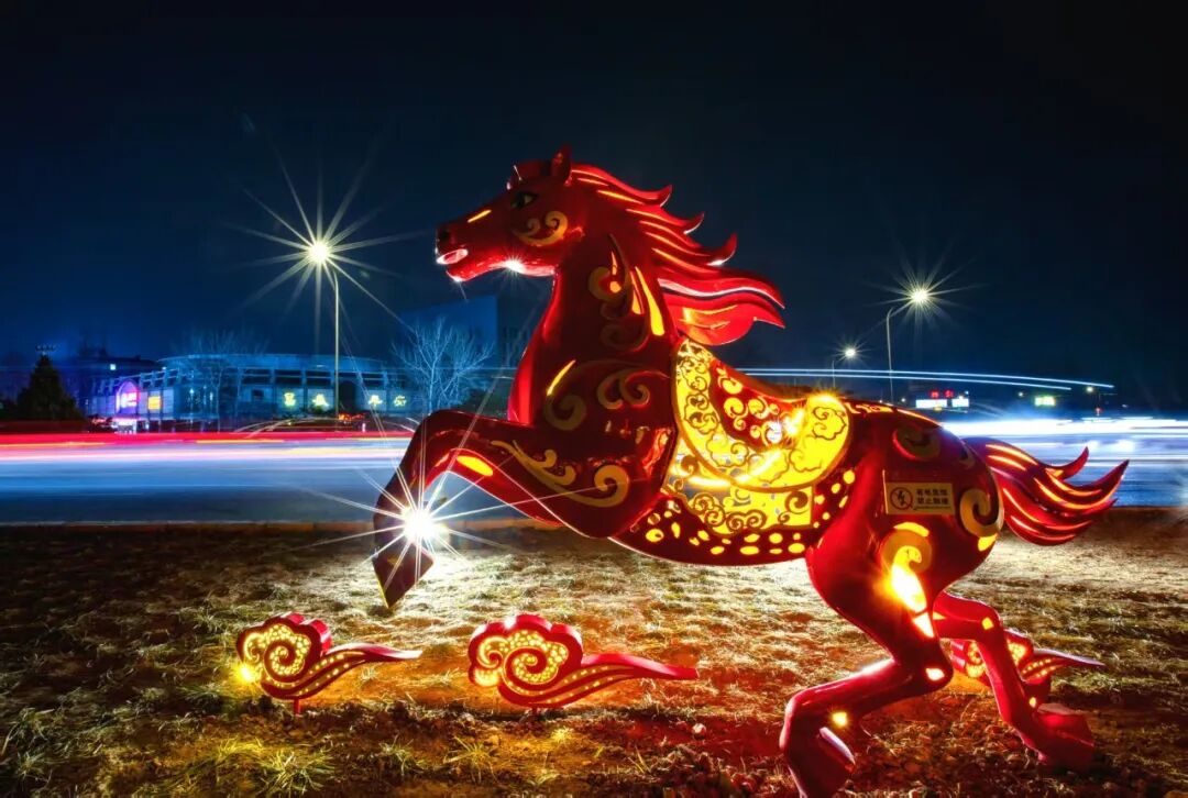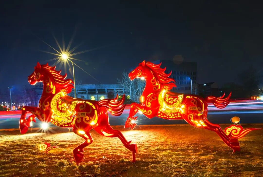 据悉,本次昌平区春节景观亮化以“昌盛平安,繁花骏景”为主题,深度融合昌平地域文化和马年生肖元素,构建起“29节点+29条道路”的全域亮化网络,昌平西关环岛和回龙观双龙柱字碑分别以万马奔腾、龙马精神为主题,摆设28匹骏马,精准覆盖昌平城区、回天地区以及两谷一园地区三大核心区域,各区域布局各有侧重: