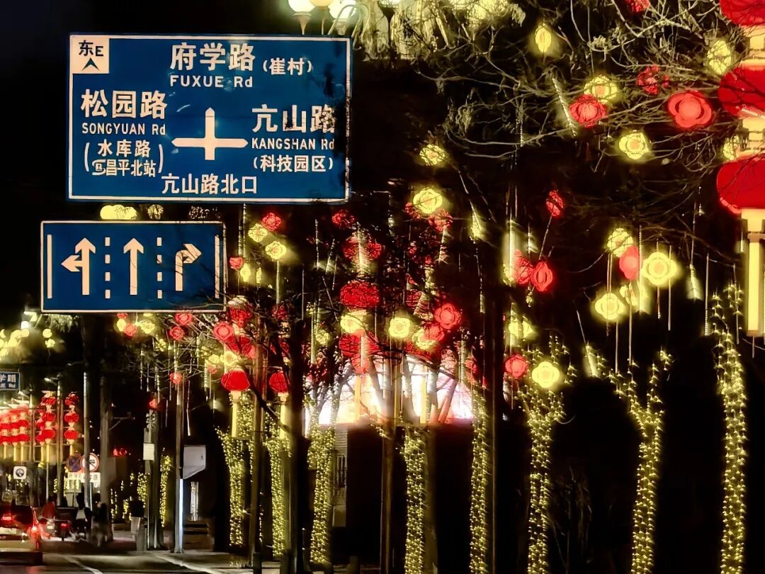 除了政府街,昌平城区内的府学路、南环路、北环路等路段也均布设了精致亮化设施,昌平公园、南环路步行天街等关键节点与之遥相呼应,一步一景间尽显昌平的历史底蕴与传统韵味,让市民在漫步途中,目之所及皆是新春盛景。