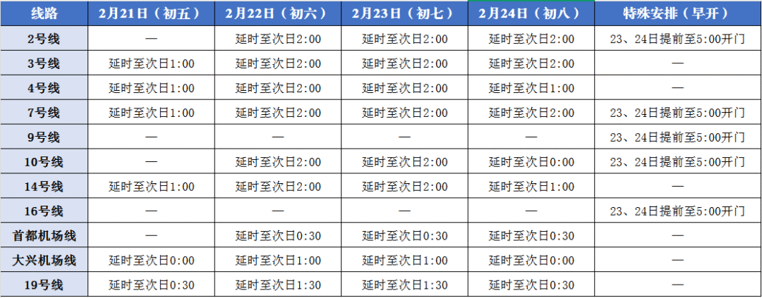 覆盖北京站、北京西站、北京南站、朝阳站、丰台站及两大机场,保障夜间到站旅客顺畅衔接。同时,2号线、7号线、9号线、10号线、16号线于23日、24日提前至5:00开门运营,满足早间返程出行需求。