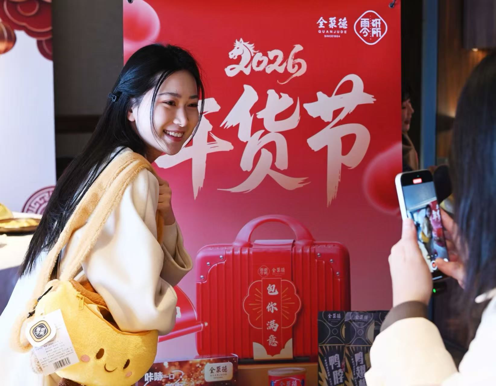 更引人注目的是,今年年货节精准捕捉了年轻消费群体的喜好。全聚德创新推出的“好运上上签饼干”,将零食与趣味抽签结合,增添惊喜互动;“全聚德·零研所抓财包”以毛绒元宝造型兼具零食包装与时尚斜挎包功能;而“全聚德·零研所包你满意礼箱”则采用红色行李箱设计,食用后可化身实用收纳盒,让年礼不仅满足味蕾,更传递出悦己、分享的生活态度。