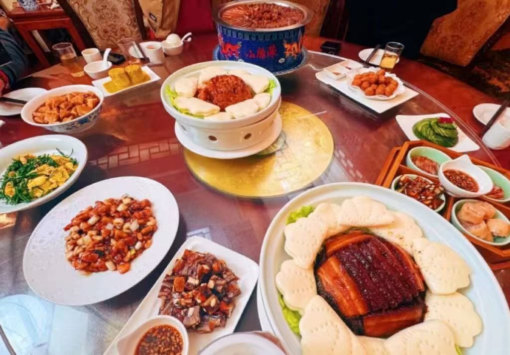 而尤为特别的是,餐桌上还点缀着精致的花饽饽,这一抹绚丽多姿的色彩,不仅为阖家团圆的盛宴增添了喜庆氛围,更在舌尖之上,为温馨的相聚时刻再添几分甜蜜与美好。