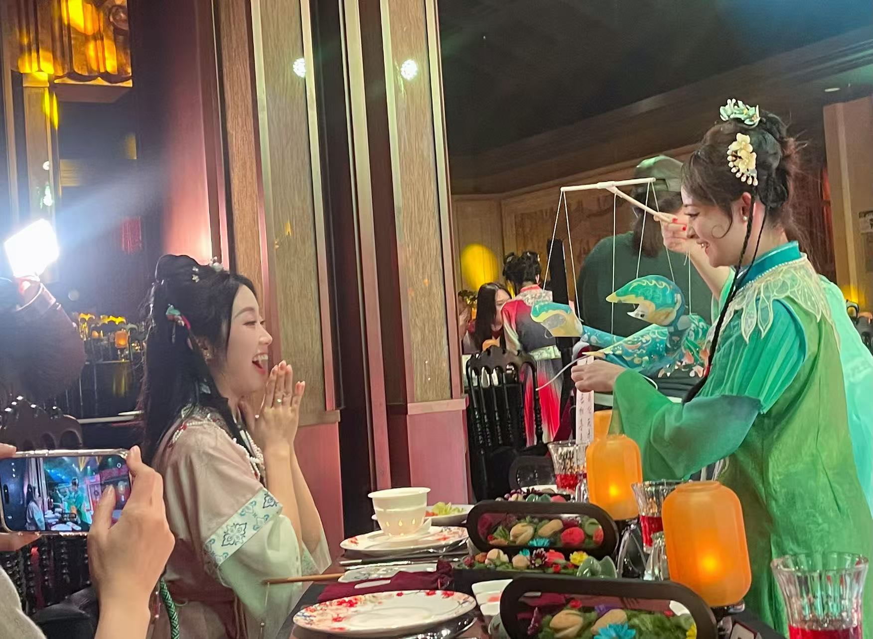 食客可以换装成为书中角色,在“元春省亲”“宝黛共读”等经典桥段中,实现“入席即入戏”的独特体验。