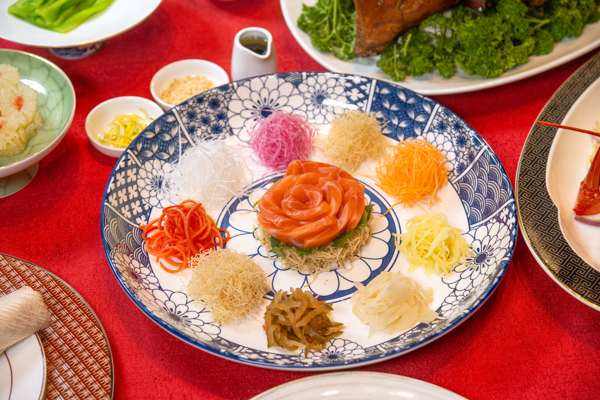 北京西单美爵酒店·融轩中餐厅的年夜饭,开席以一道醋香捞蜇头清爽唤醒味蕾;主菜中,油淋鲜活石斑鱼寓意“年年有余”,金沙酱汁炒鲜虾球则因金黄饱满的外观,带来“喜庆吉祥”的好彩头。