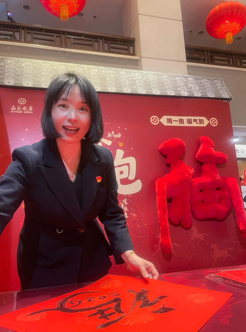 在品味美食之余,京城的新春还有着温暖的互动。西苑饭店特设“福抱墙”打卡区,背景红火喜庆,适合拍照留念,记录团圆时刻;更有手写福字体验区,笔墨纸砚已备好,邀请你亲手书写福字,把祝福带回家。这个腊月,不妨来走一走——写福字、拍团圆、沾喜气。