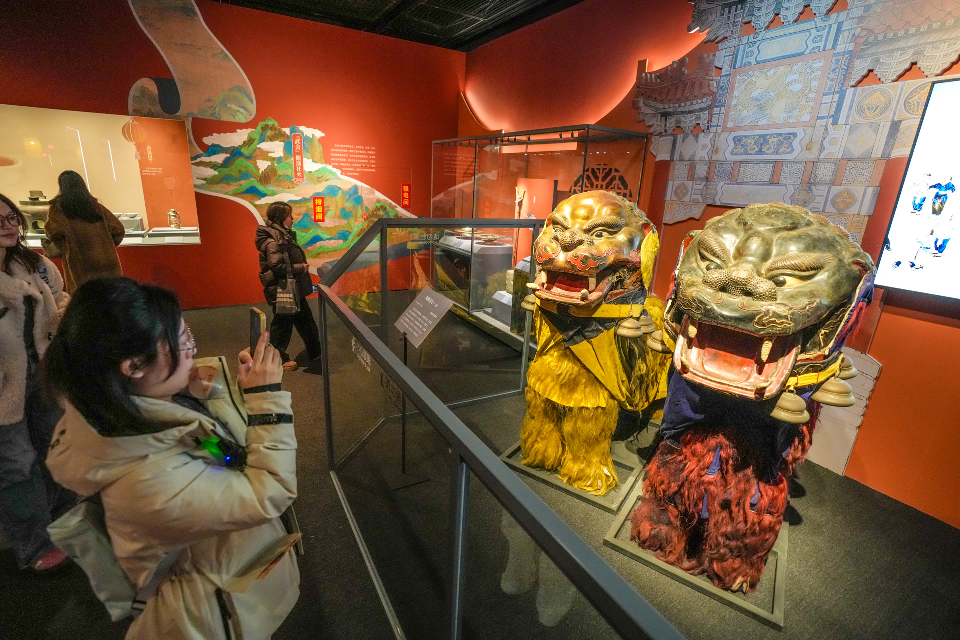面颊装饰火焰纹,颈部悬挂铜铃,