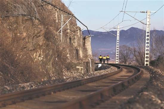 2月6日,气温跌至零下19摄氏度,当天,他们的任务是巡线,一个上午要在轨道上走8公里多,并查看沿线是否有病害。