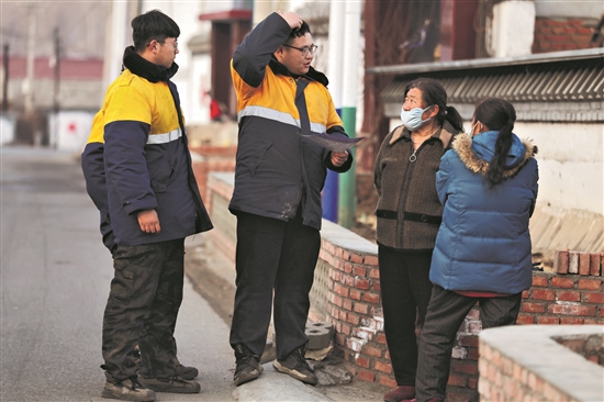 2月4日,工人们到金沟屯镇为当地村民进行铁路安全宣传。
