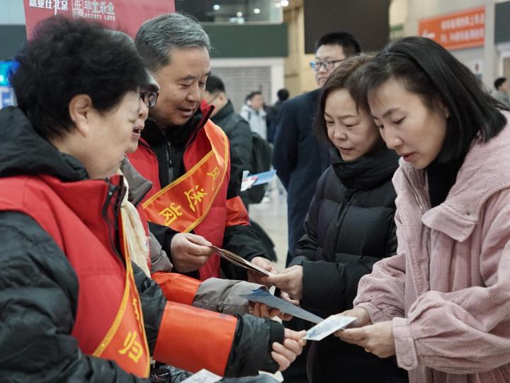 日前,在北京南站的候车大厅里,多了一批身披服务绶带的“就业向导”,他们手捧一份份“暖心就业礼包”,在熙熙攘攘的旅客中,送上来自北京的就业关怀与新春祝福。这是由北京市人社局联合市重点站区管委会首次举办的“春风送岗暖归途 北京就业伴你行”公共就业服务宣传系列活动。自今年1月起,北京市全面启动“春风行动”暨就业援助季,活动将持续至3月底。详情>>
