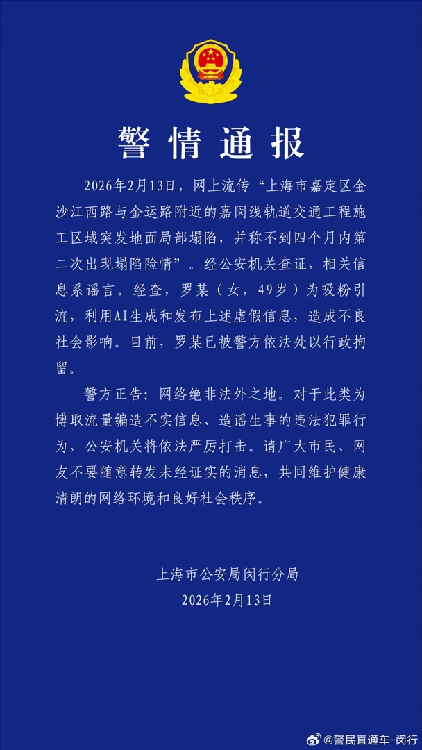2月13日晚,@警民直通车-闵行 发布警情通报,全文如下: