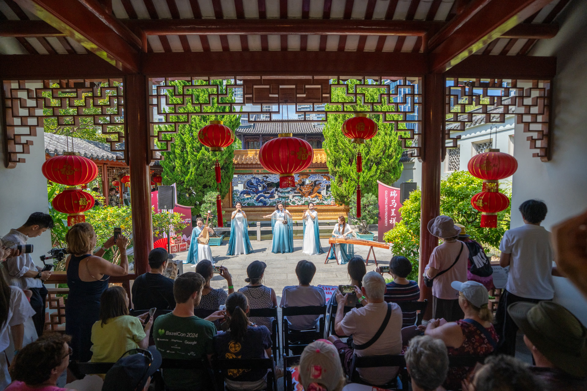 本次“欢乐春节”游园会在悉尼谊园举办,将文艺演出巧妙融入园林的亭台、水榭与曲径之中,使中国文化在山水意境中自然流淌。悉尼观众可在“移步换景”中体验“戏在景中演,人在画中游”的沉浸情境,深切感受北京文化的浓厚底蕴与新春的美好祝福。