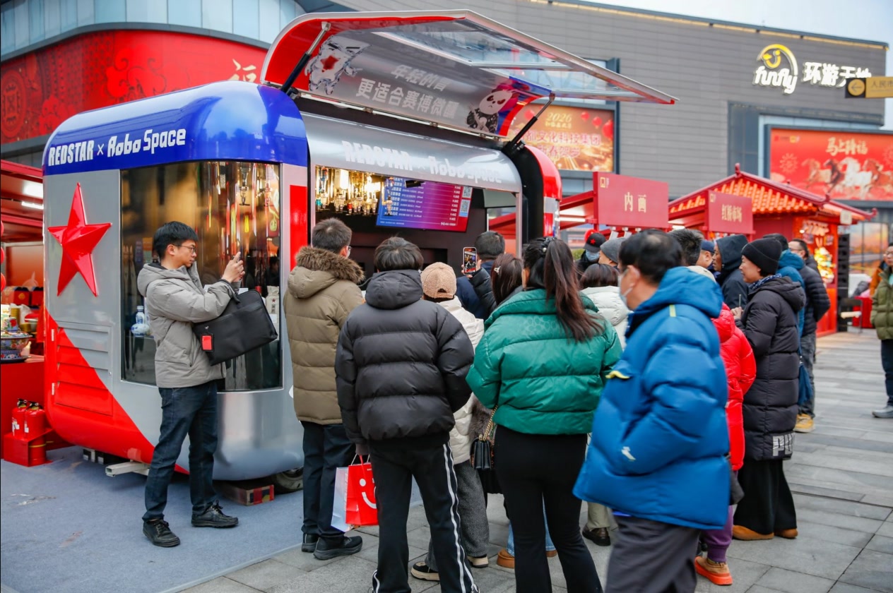 2月4日—3月3日,承载六百年市井烟火的隆福寺新春市集热闹迎客。市集以“马不停蹄,隆福潮集”为主题,打造了一场兼具历史厚度与时代活力的沉浸式年节盛宴。作为著名中华老字号企业和国家级非物质文化遗产保护单位、入选首批中国消费名品名单的品牌,红星携全系列产品精彩亮相,既扎根北京一轻控股有限责任公司综合展位深耕年货供给,又以AI智能机器人调酒车解锁潮玩新体验,“传统传承+科技创新”双轮驱动,全方位展现百年老字号的时代新韵,成为市集上最具人气的网红打卡地之一。