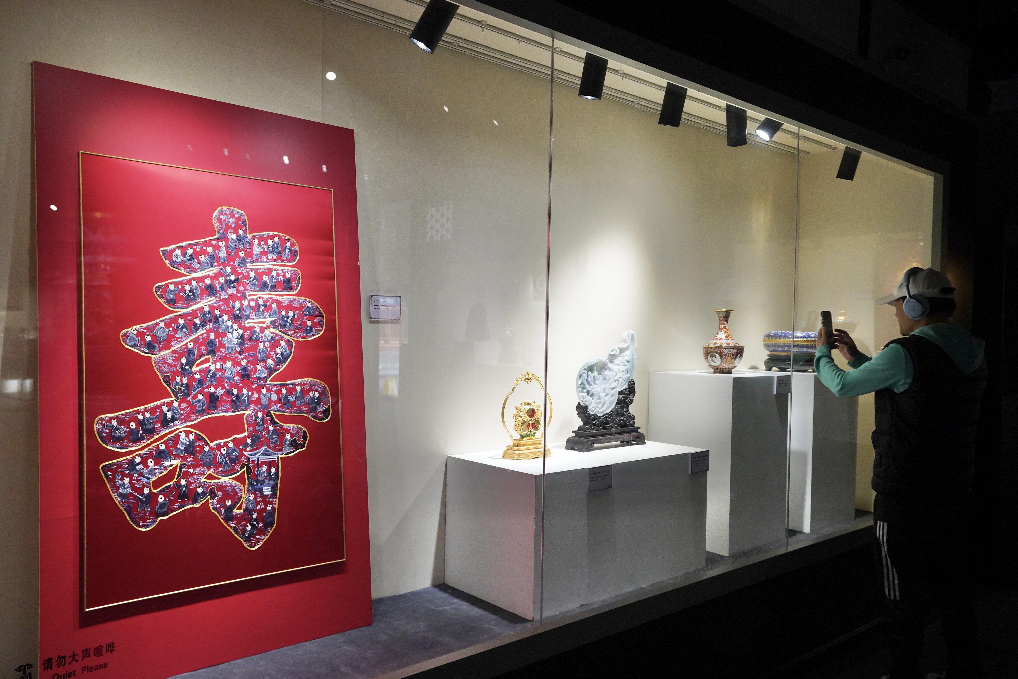 以“财、寿”为主题的观德殿内,金玉满堂,仁寿延年。从招财纳福的精巧摆件,到象征福寿绵长的雅致器物,汇聚一堂,尽显传统工艺之美与吉祥文化之意。