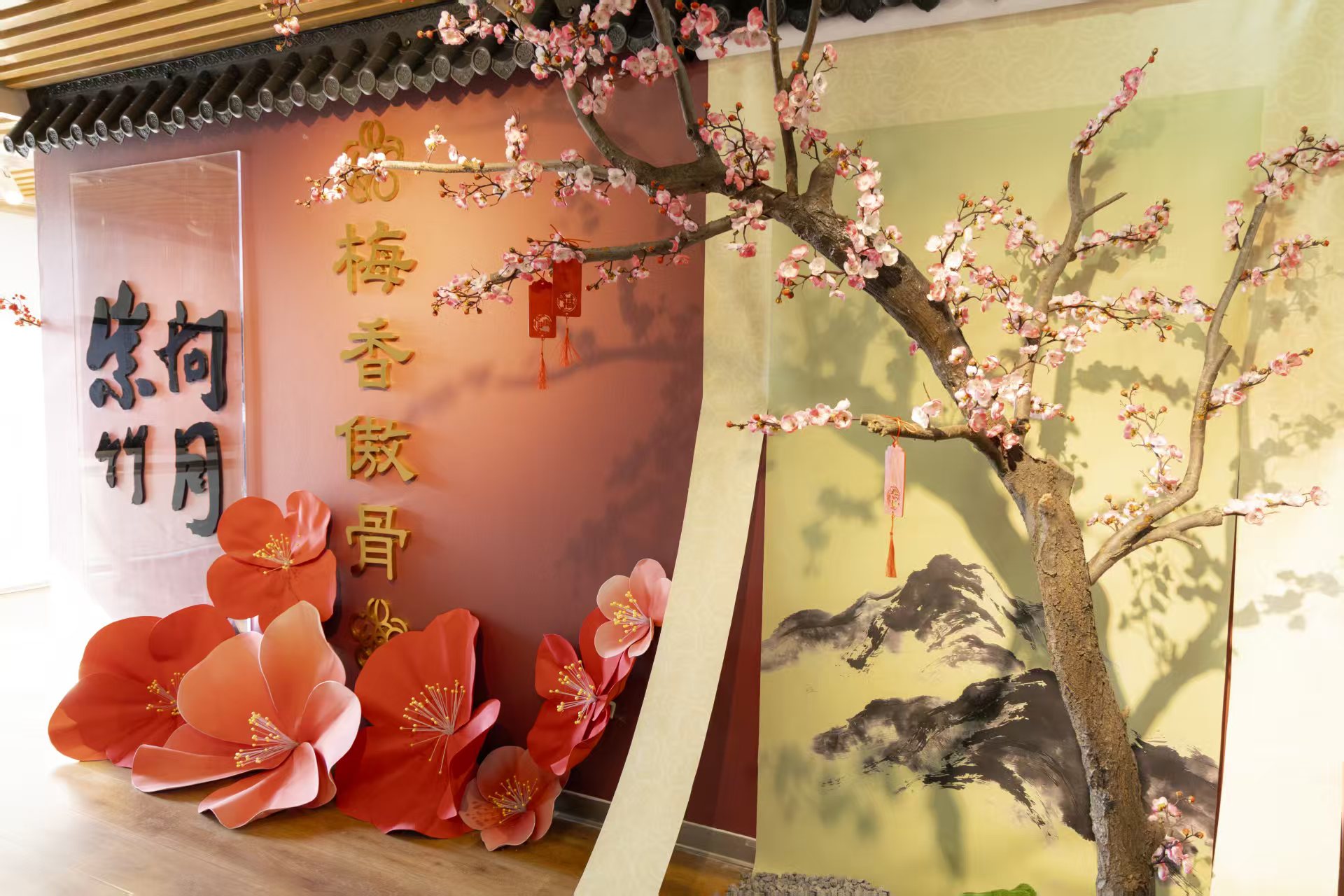 此外,公园南门科普小屋推出拓绘佳节系列活动,游客可在复刻雕版上亲自解锁拓印技艺,将“福”带回家。公园在开展各类节庆活动的同时,在行宫、问月楼、友贤山馆等文化核心区域,推出“春之瑞”“梅香傲骨”等高品质室内文化展览和特色户外展示,以多元形式丰富市民游客节日文化体验,让大家在游园中感受传统文化与节日氛围的深度融合。