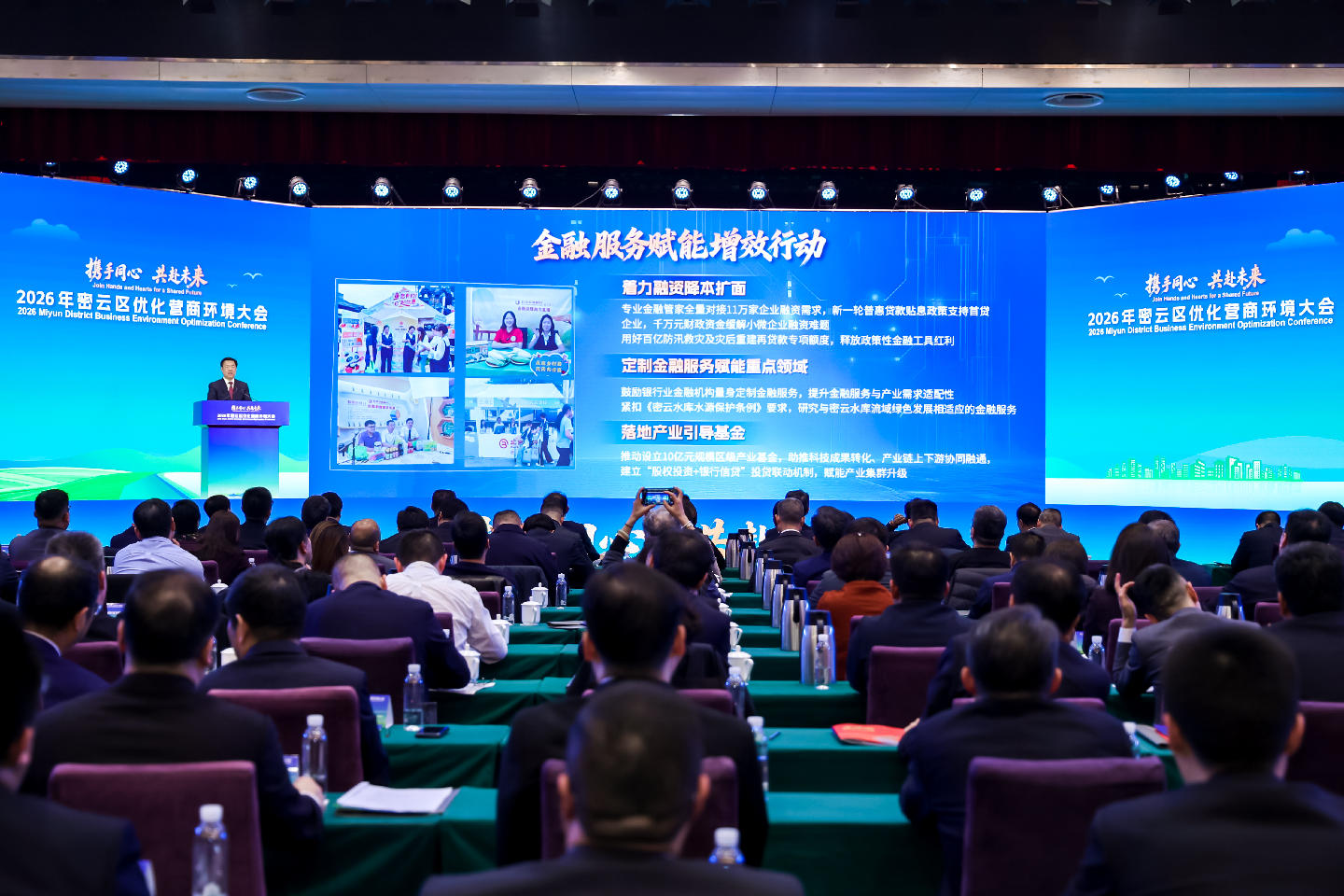 近日,密云区举办“携手同心,共赴未来”2026年优化营商环境大会,发布《密云区优化营商环境十大行动计划》,同步推出“政策礼包”和“机遇清单”,为企业发展精准赋能。
