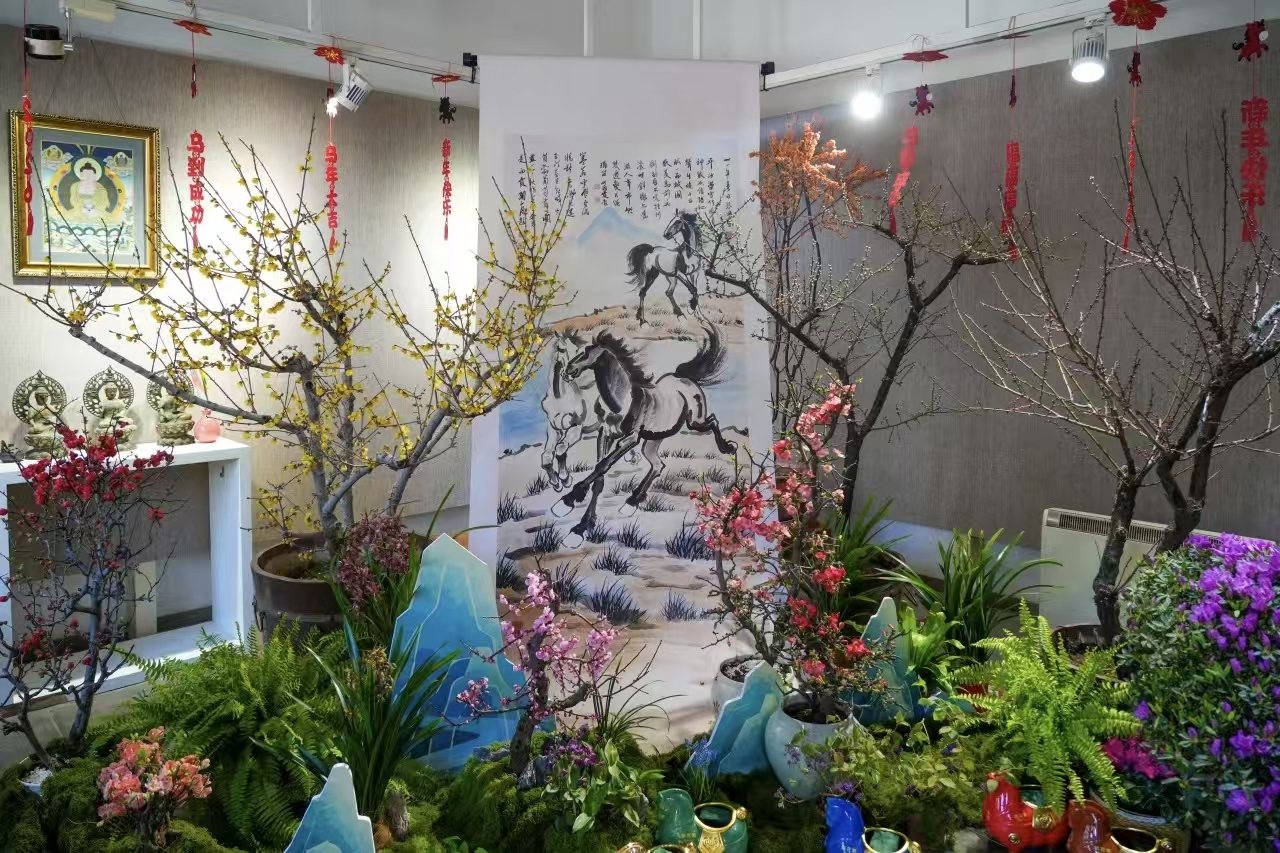 见心斋正凝堂内,“骐骥驰骋·花样征程”新春花卉展汇集200余盆年宵花卉,以马年生肖文化为线索,打造步移景异的沉浸式赏花空间;碧云寺茶室,“春风策马·香山寻芳”新春室内花卉展,则以《骏马图》立体画卷为主景,搭配蜡梅、海棠等十余种花卉,山林画卷意境悠长。两处花展将于2月15日对外开放,陪伴市民跨入新春。