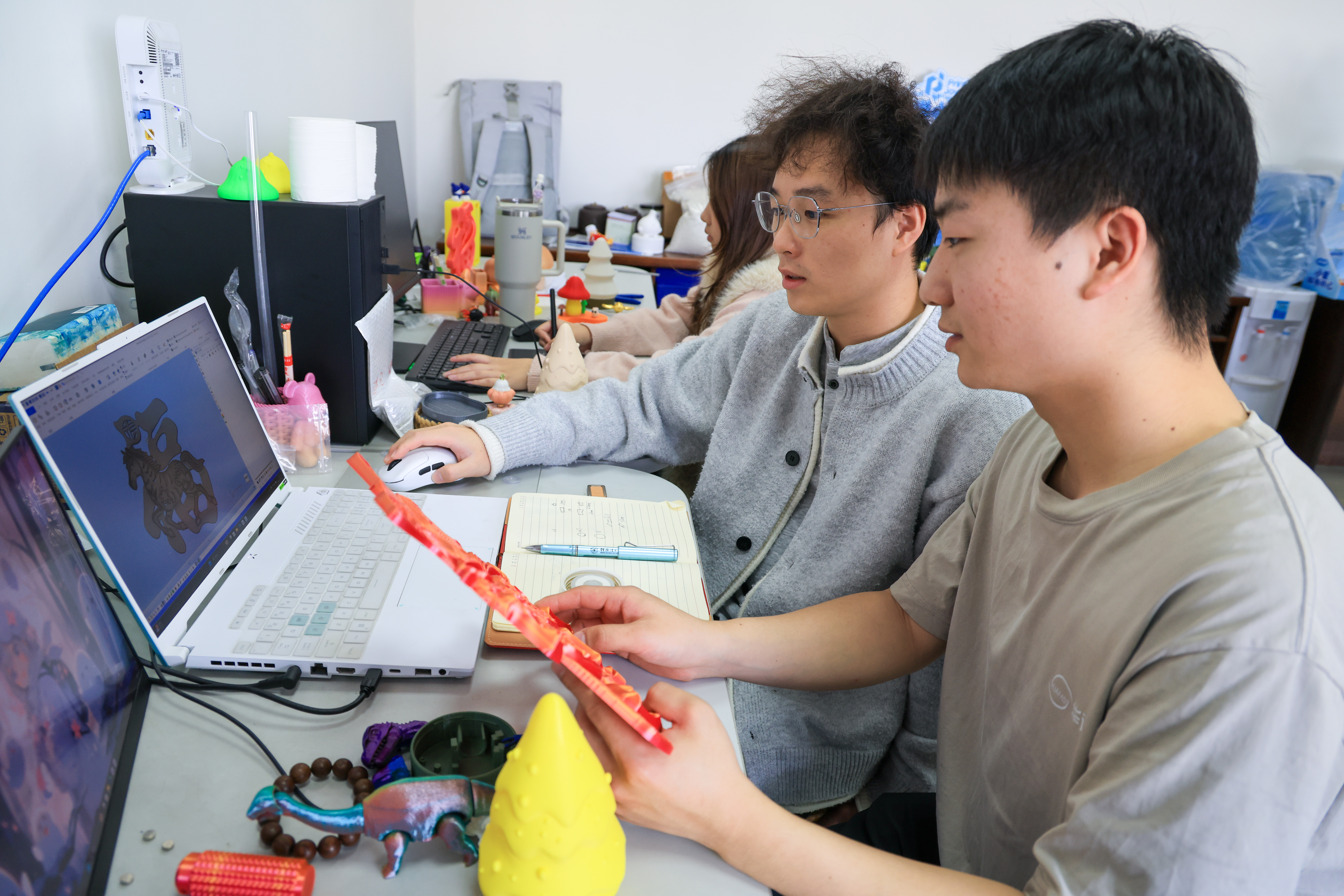 “农场”打印的产品主要分为两类。一类是玩具、摆件、装饰品等日用品,产品以出口为主。一类是随着打印技术和耗材质量不断进步,国内厂家定制的工业件。春节前,新春主题订单纷至沓来,红色、金色等颜色的耗材用量增加,打印出福字装饰、吉利话标牌、带有马年元素的挂件等产品。