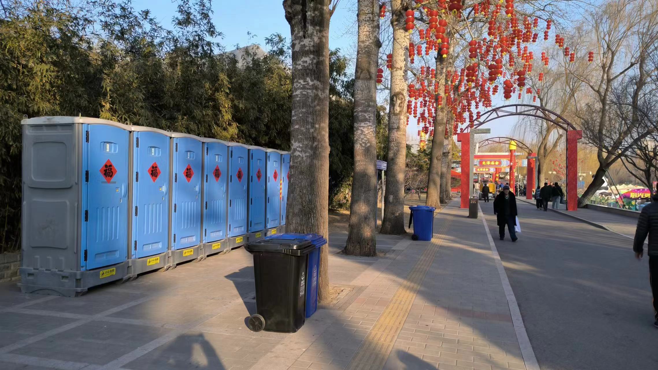 各区城市管理部门会同区文化和旅游等部门建立“手拉手”工作机制,提前开展研判,对庙会安检口、排队等候区、游乐设施、小吃摊周边等环境卫生薄弱区域,增设分类垃圾桶,在桶内套多层垃圾袋,清运过程中换袋不换桶,提升垃圾清运效率,做到“垃圾不落地”。庙会根据往年经验,在人流量大区域选择合适位置摆放移动厕所,增加保洁、引导人员,及时打扫厕所,出现排队时及时疏导。同时,各区环卫作业单位也在地铁口、停车场至庙会、出入口增设废物箱,在庙会周边摆放移动厕所,确保群众如厕需求。