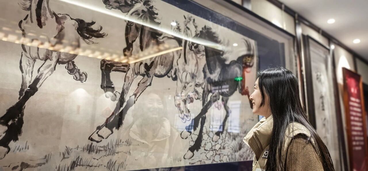 该展览将展出至4月10日,观众可免费参观。《群马》《群奔》《立马》等徐悲鸿的经典画作均展出。