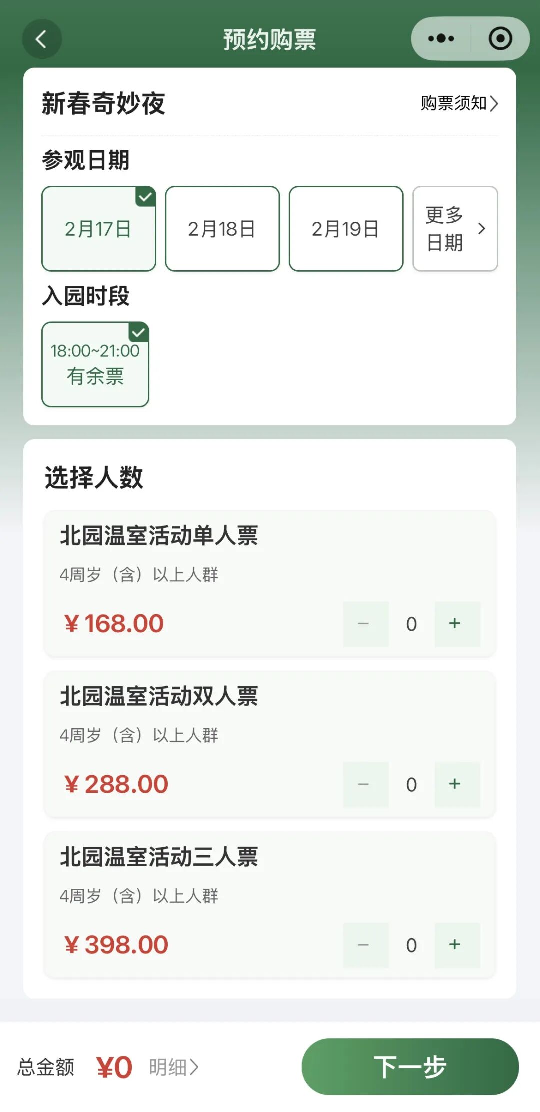 新春奇妙夜活动4岁以下儿童无需购票,4岁及以上需购票进入温室活动区域。购买温室活动票可参观国家植物园(北园)展览温室及低温温室。