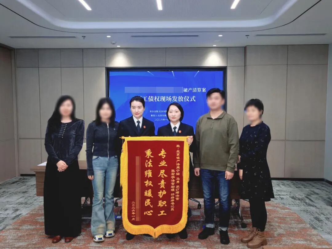 新春将至,暖意先行。为切实维护破产企业职工合法权益,让群众过上安心、暖心的新春佳节,在农历马年春节即将到来之际,北京破产法庭提前为多家破产企业职工发放工资,以高效司法服务守护民生温度。多家企业的职工代表通过赠送锦旗等方式向法官表示感谢。