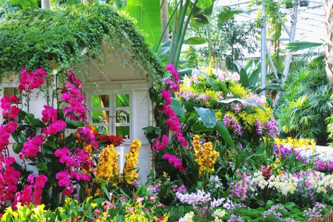 国家植物园(北园)展览温室是本次兰花展的主展区,以热带兰花为主,共分为五个区域,植物墙区、景观岛区、中心花园区、精品兰花区以及幽谷兰境区,以兰花为主的近千种(含品种)万余株花卉争奇斗艳,全方位展现兰花文化的独特魅力。同时,大年初一至初七期间,这里还将举办新春奇妙夜专项活动。