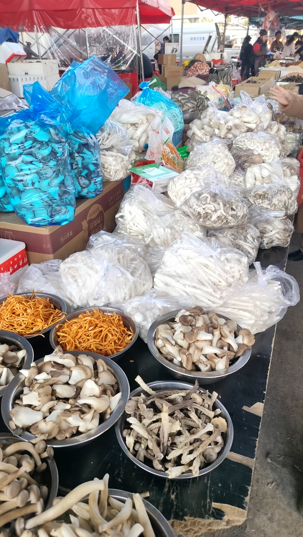 大韩继大集是周六日有,聚合了不同地域的商户。有本地人在大棚种植的蔬菜、草莓、蘑菇;有山民养的羊和牛,收拾或做成熟食后来集上卖;还有家禽、散养的鸡蛋等,日常出去遛弯,经常会经过养牛场,牛被伺候得很滋润,灵动的山羊爬上悬崖峭壁,摆出各种造型;散养鸡更是浪漫,夏天花草里寻食吃,大摇大摆,落落大方,走近它们也不会逃。有些大棚的菜很便宜,比如毛根的小香芹,是间苗间下来的,两块钱一袋子,有两斤多。
