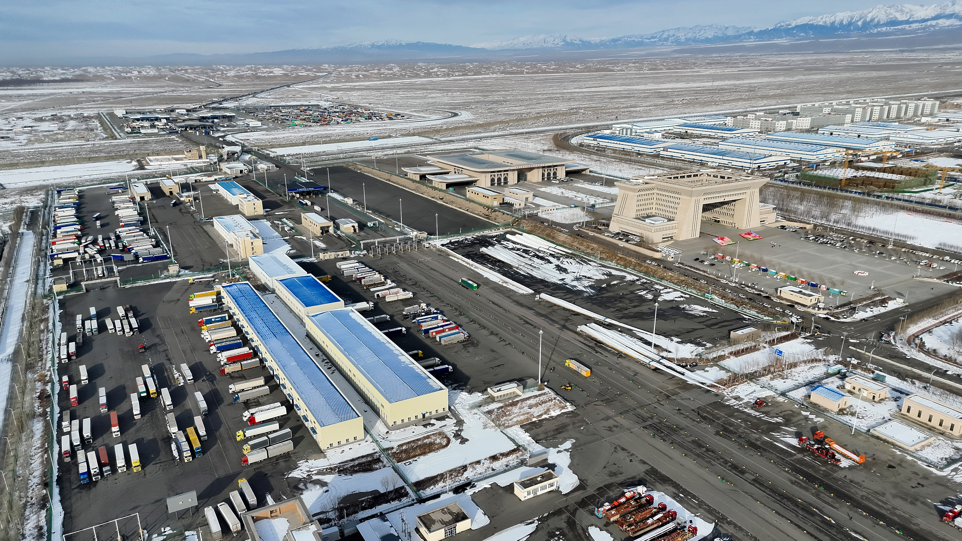 农历岁末,地处西北边疆的霍尔果斯口岸繁忙依旧,进出境车辆川流不息,一列列“钢铁驼队”冲破寒风、昼夜驰骋。