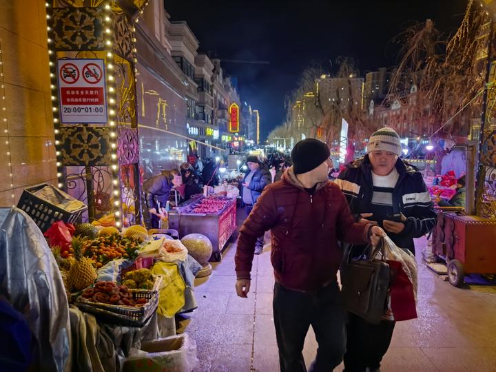 夜幕降临,霍尔果斯夜色动人。友谊路霓虹闪烁,步行街各国商旅人流如织,美食飘香,寒风吹不散这里的烟火气息、时尚气息。
