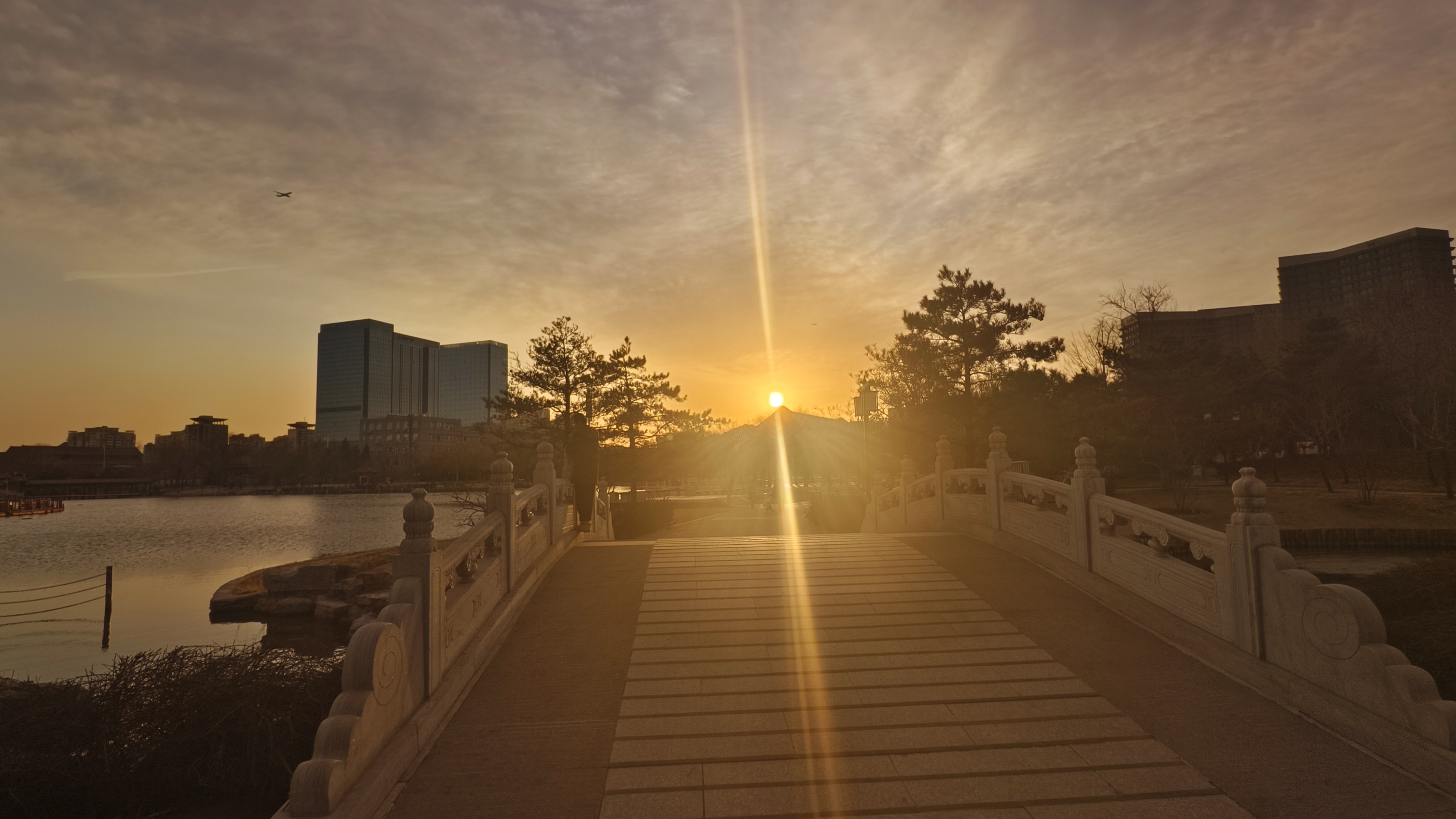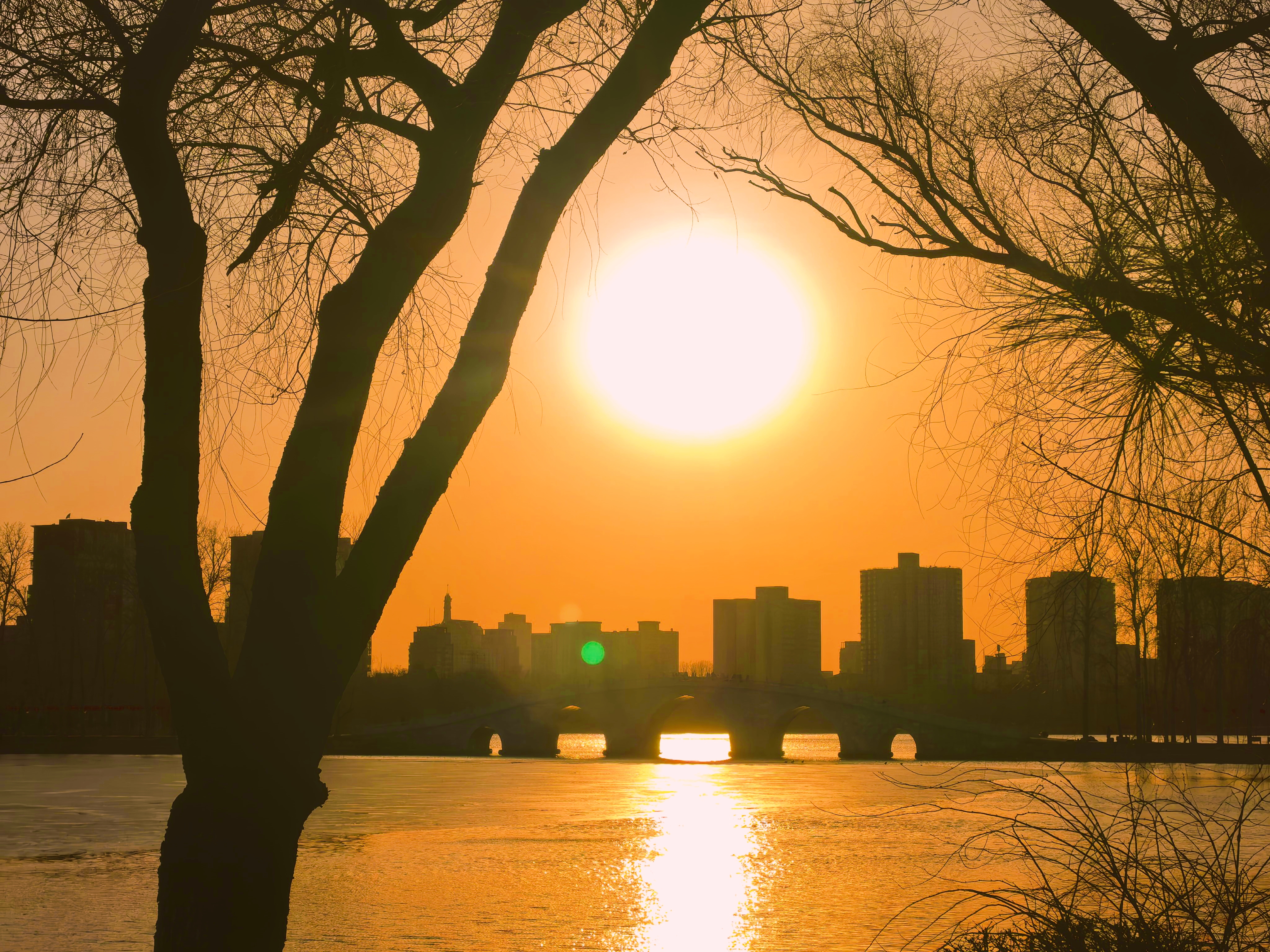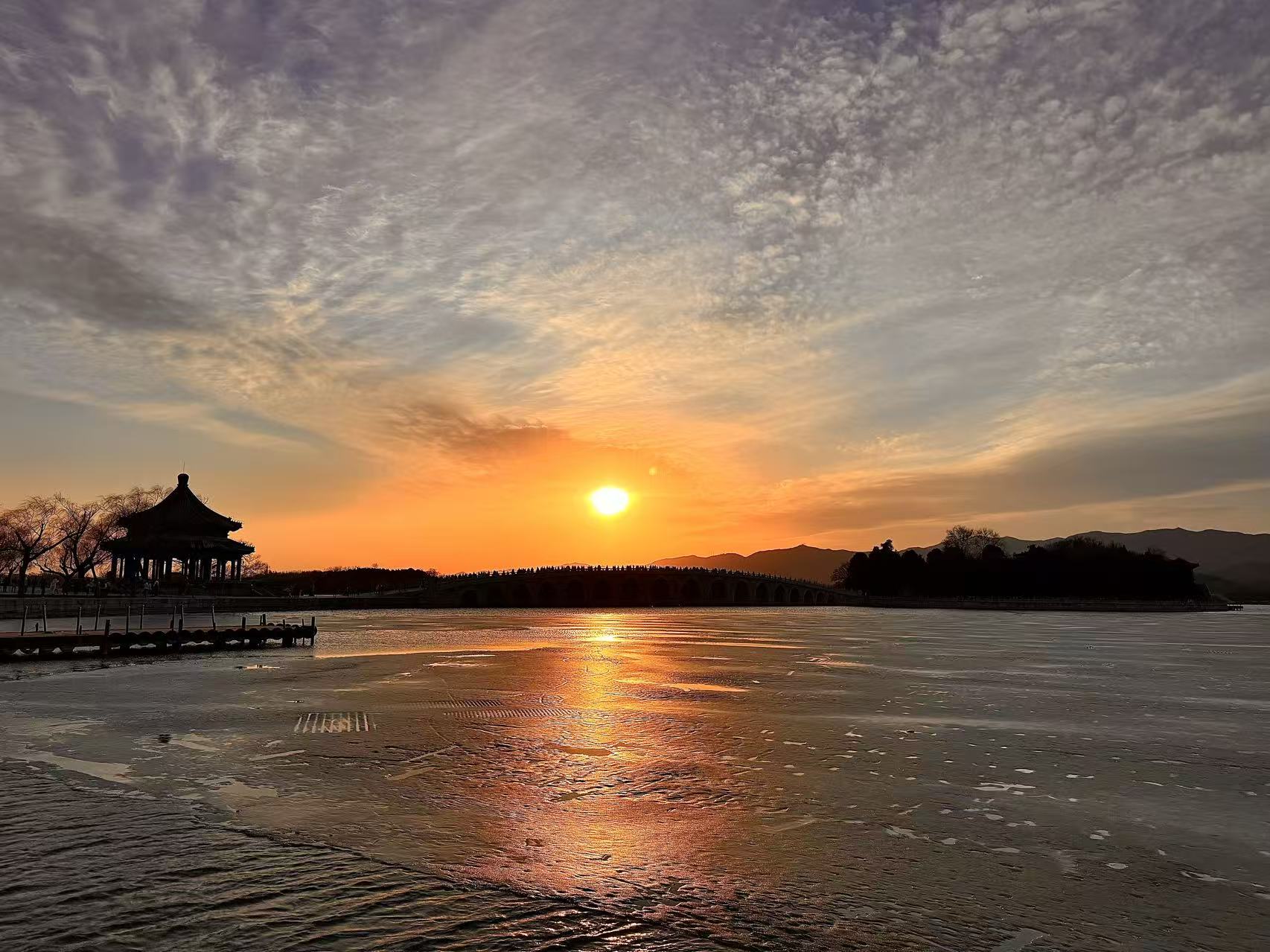 今天是蛇年最后一个工作日,北京玉渊潭公园中堤桥呈现瑰丽金光穿洞。姚猛摄
