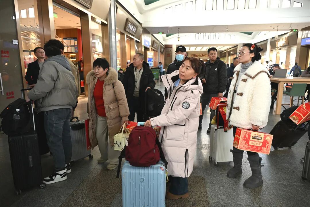 2月12日下午,北京站候车大厅里人流穿梭。K1189次列车的检票口前,一群等候返乡的务工人员不时望向车次显示屏,眼神里写满期待。都先生把一张车票攥在手里,看了又看,笑着对身旁的老乡说:“这下踏实了,能顺顺利利回家过年了。”