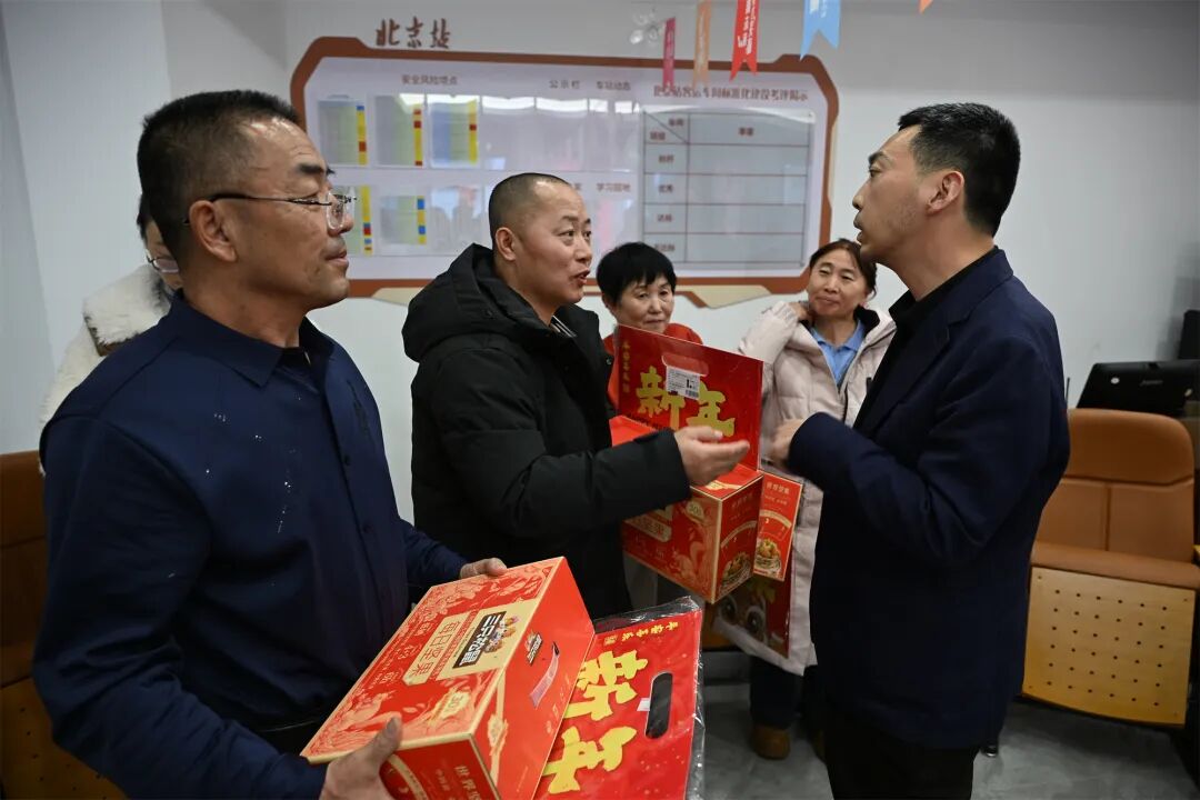 列车发车前,北京市人社局农民工工作处副处长蔡保坤、海淀区人力社保局副局长吴展安、海淀区人力资源公共服务中心主任桑参专程来到车站,为即将启程的务工人员送上新春祝福。他们逐一将装有春联、福字、干果等物品的“新春大礼包”递到大家手中,感谢这一年来他们为首都发展的辛勤付出,并祝愿大家“新岁顺遂、万事顺意、一路顺风”。