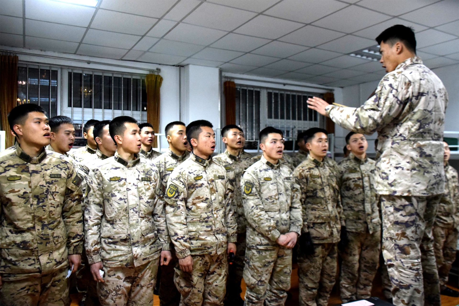 新春将至,武警北京总队机动某支队礼堂内歌声激昂,以“歌声映初心 忠诚铸军魂”为主题的歌咏比赛热烈举行。全体官兵以歌为媒、以声明志,用铿锵旋律传递忠诚担当,用嘹亮歌声凝聚强军力量,让红色基因在歌声中传承,让初心使命在传唱中扎根。