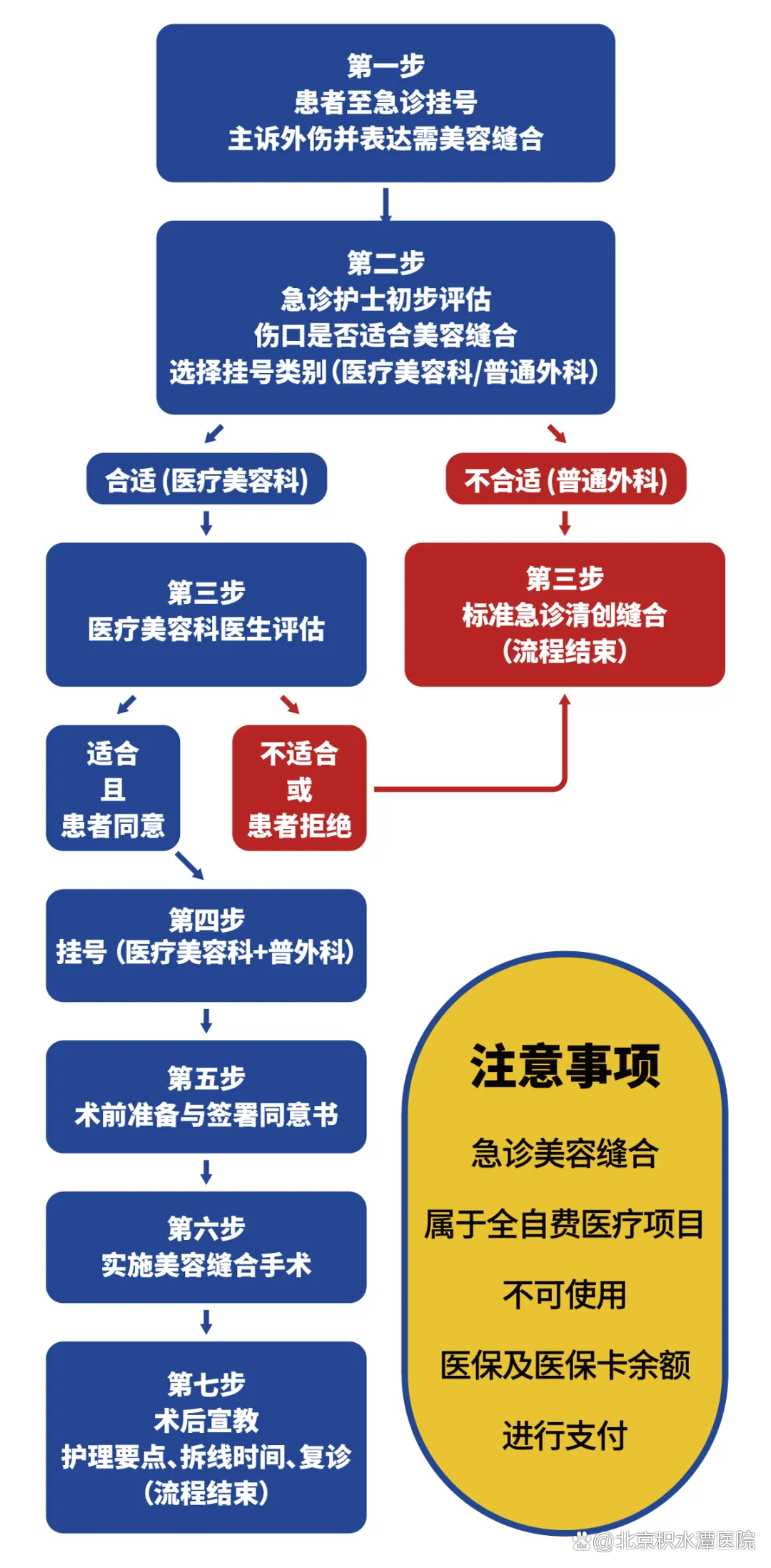 人生难免磕磕绊绊,昨天小朋友贪玩磕破了下巴,今天骑车不小心脸上撞了个口子,在日常生活中外伤早已司空见惯。随着人们对于医疗服务要求的逐渐提升,传统的“蜈蚣”式缝合已不能满足广大爱美人士的需求,取而代之的是精细美容缝合,保证瘢痕“最小化”。为了更好地满足患者需求,提升就医获得感,北京积水潭医院医疗美容科在新龙泽院区开设了急诊美容缝合诊疗项目。