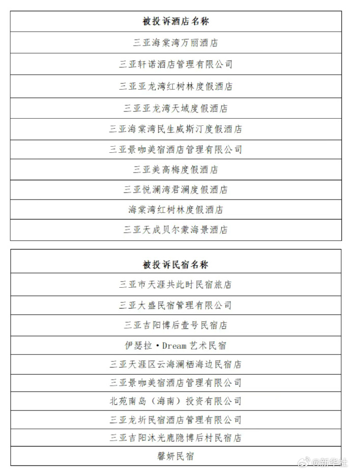 根据海南省住宿单位涉诉情况统计,2026年2月1日至2026年2月13日,海南省投诉量排名前十的住宿单位(酒店、民宿排名分列)名单如下↓本期上榜住宿单位收到的投诉问题主要集中在:服务态度不佳、服务质量不达标、虚假宣传、未明码标价、诱导消费、合同违约等方面。