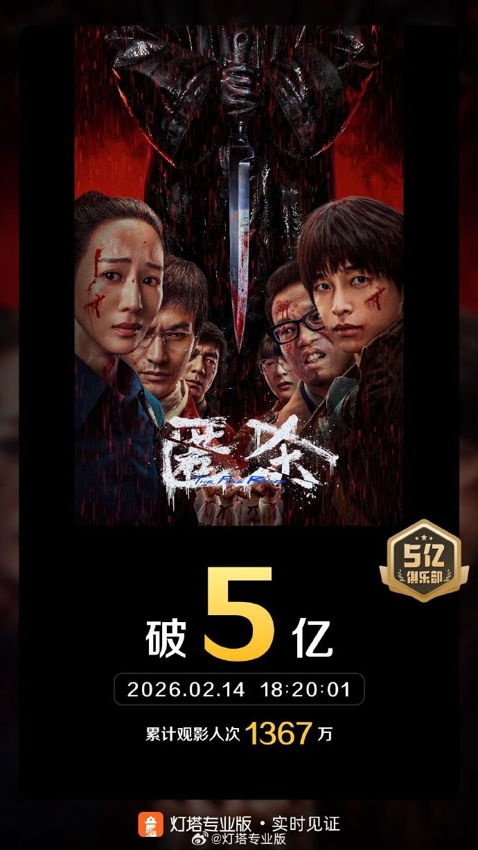 据灯塔专业版实时数据,截至2月14日18时20分,影片《匿杀》票房突破5亿。