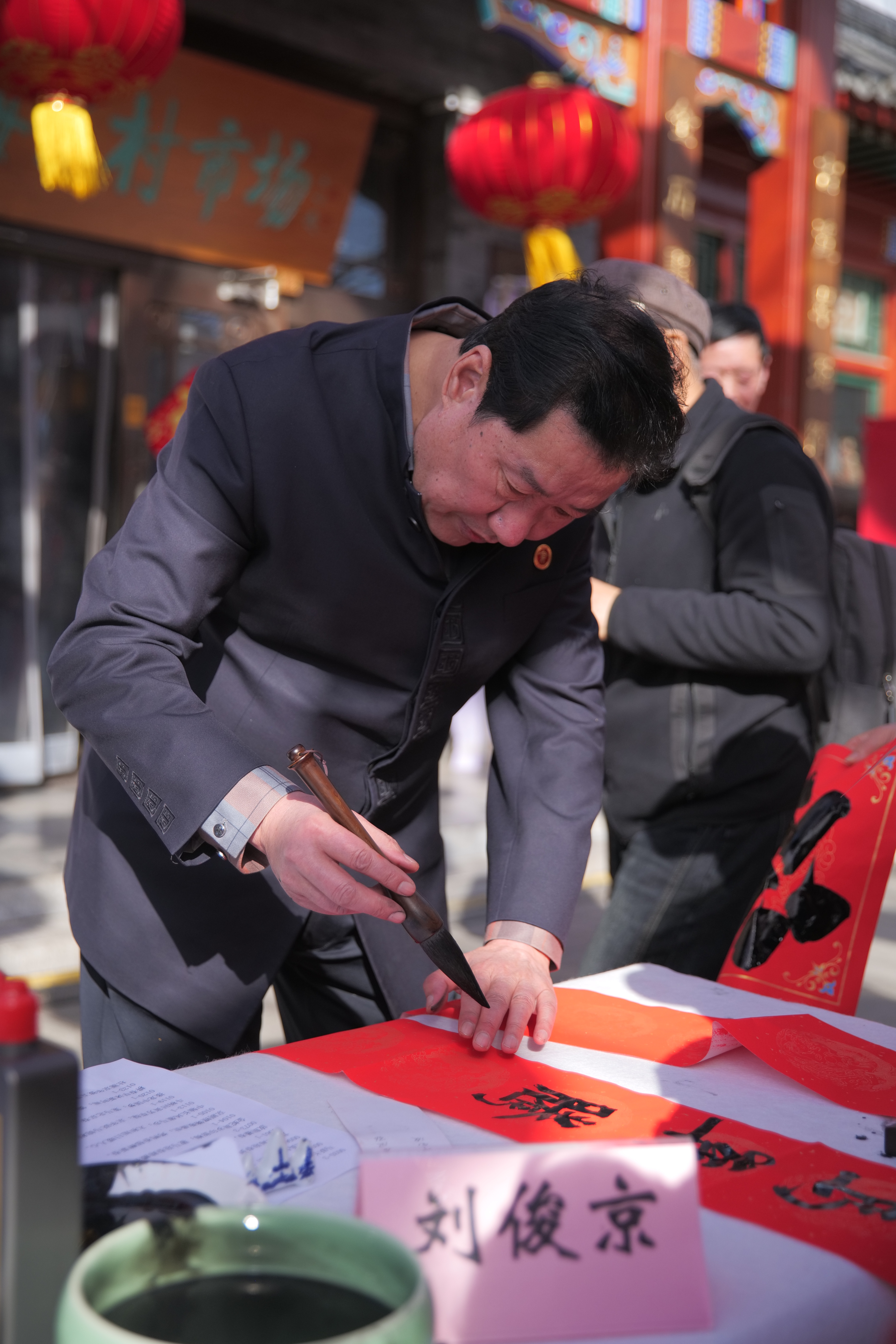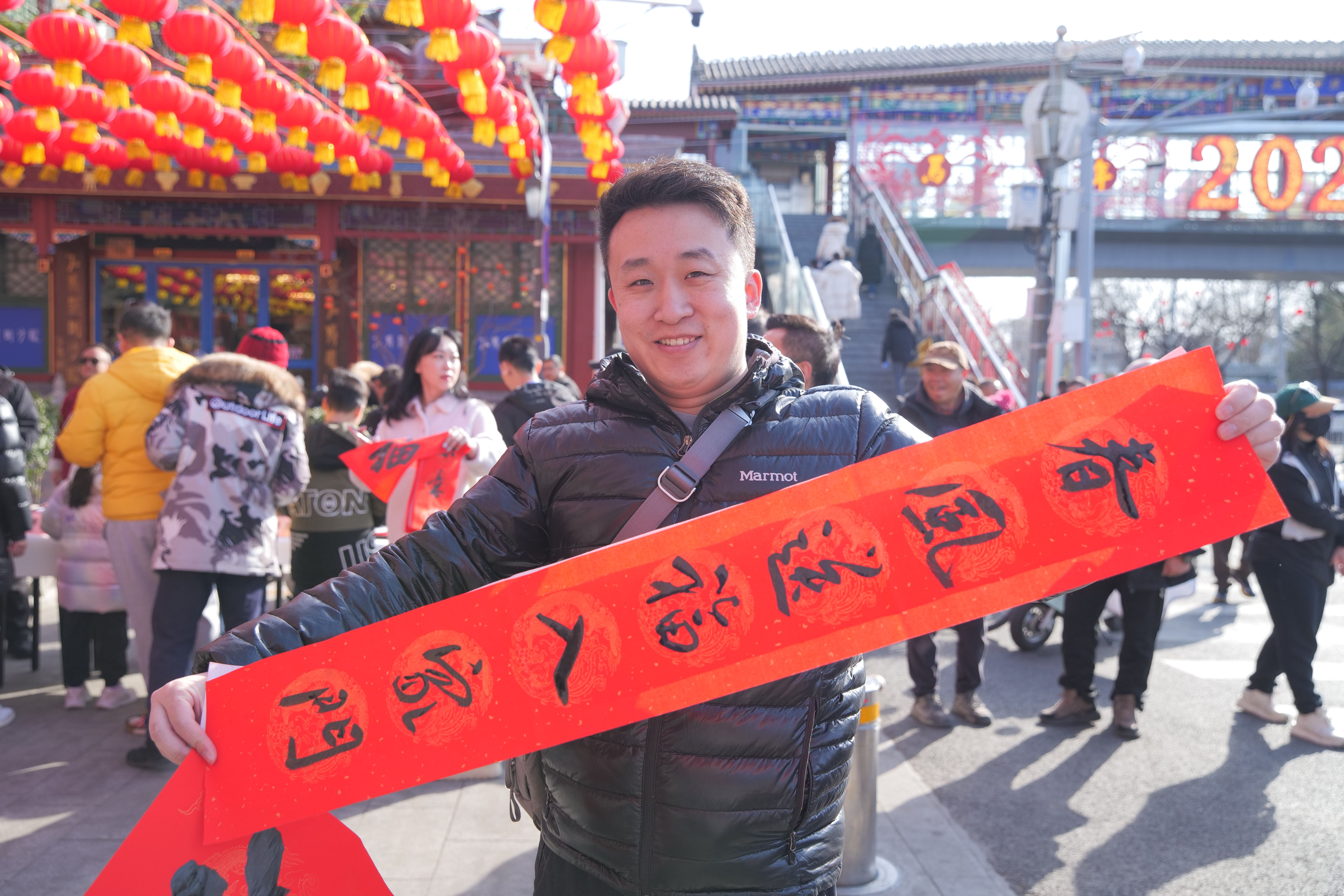 “看到市民朋友手举着春联、‘福’字,我也特别开心。祝大家新年快乐!马到成功!”昌平区书法家协会副秘书长张志刚一直埋头给市民朋友写春联,此刻,终于可以抬头说上一句了。