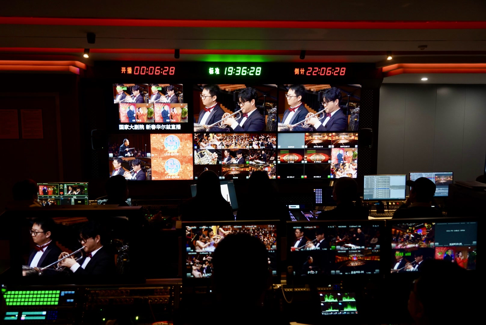 “音乐会既带着新春的祝福,也是给孩子的一次音乐艺术普及。”在回龙观文化艺术中心观看直播的刘女士说。这里的屏幕上,除了完整呈现音乐会现场实况,开演前,主持人春妮还走到后台,与指挥家、乐手赏析了演出看点,AR虚拟增强现实技术通过视觉识别、空间定位与三维渲染,把数字化的虚拟模型与音乐厅现场相结合,让直播画面鲜花漫卷、星光闪烁。为此,国家大剧院的制作团队设计了详细而丰富的直播脚本,导播间里,按照乐谱划分至各个声部、乐器的镜头指令接连发出,精确到以秒计算。