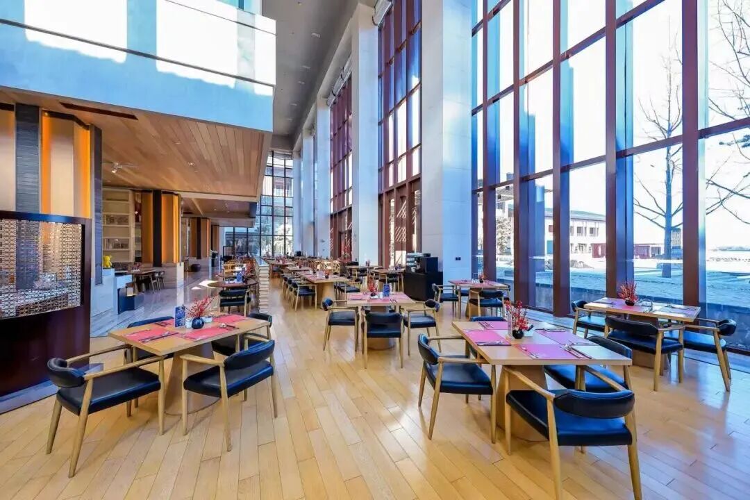 酒店坐落于雁栖湖畔,新中式园林雅致如画,临湖观景可尽揽湖光全景。春节期间酒店正常营业,特别推出“湖景年夜饭”套餐,并于正月初一至初四,在酒店大堂精心呈现“非遗贺新春”文化体验雅集。