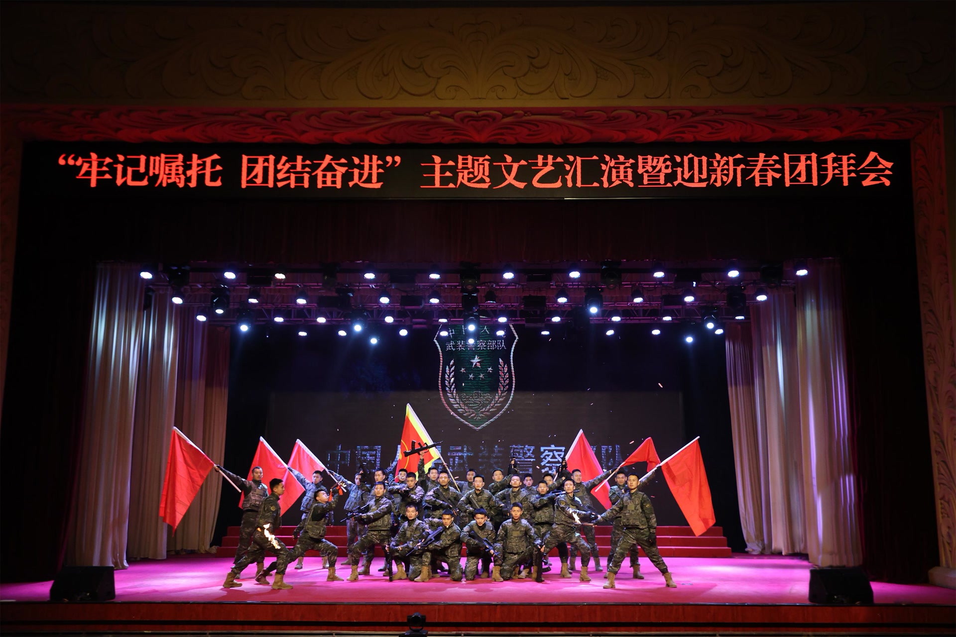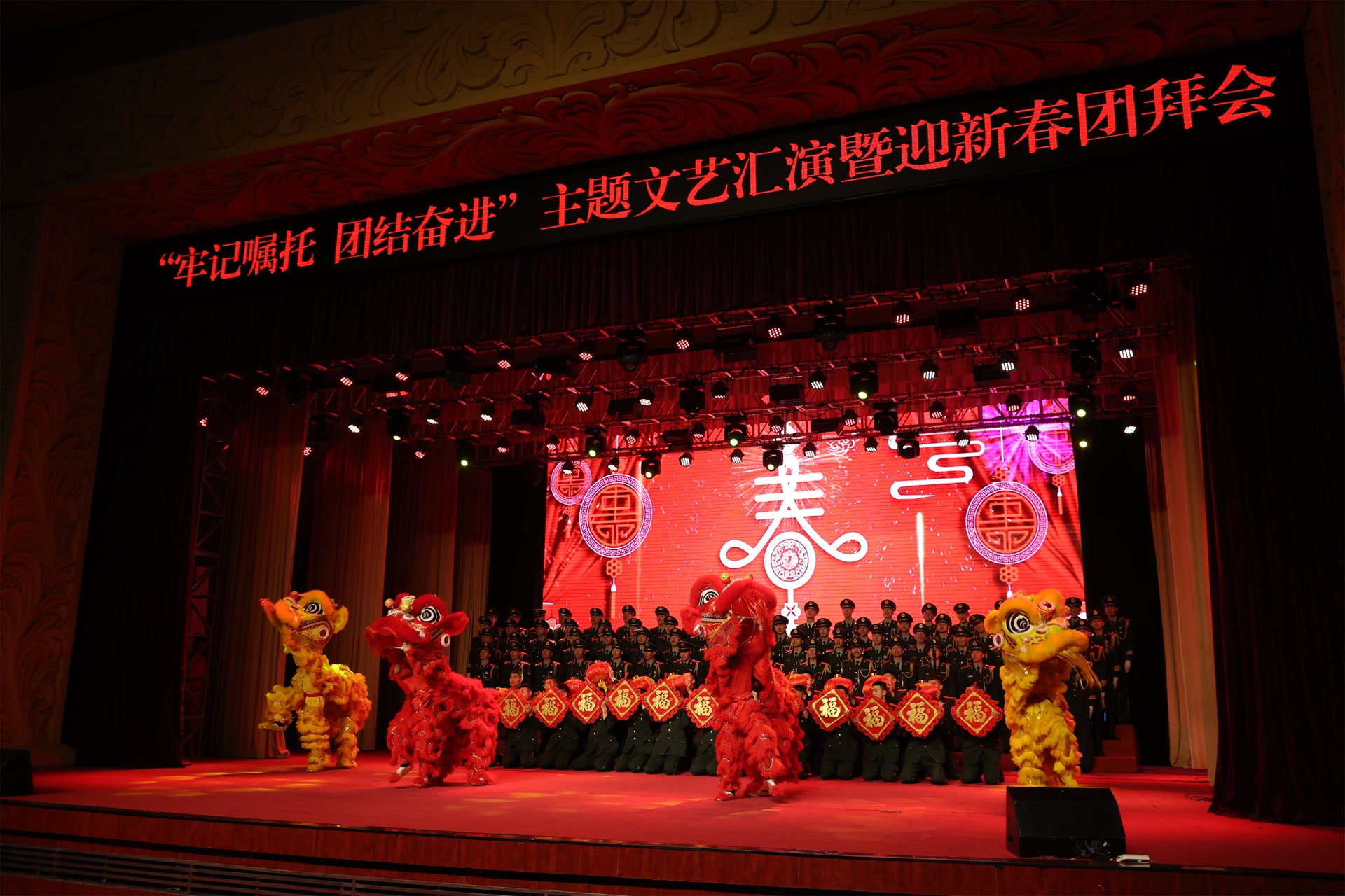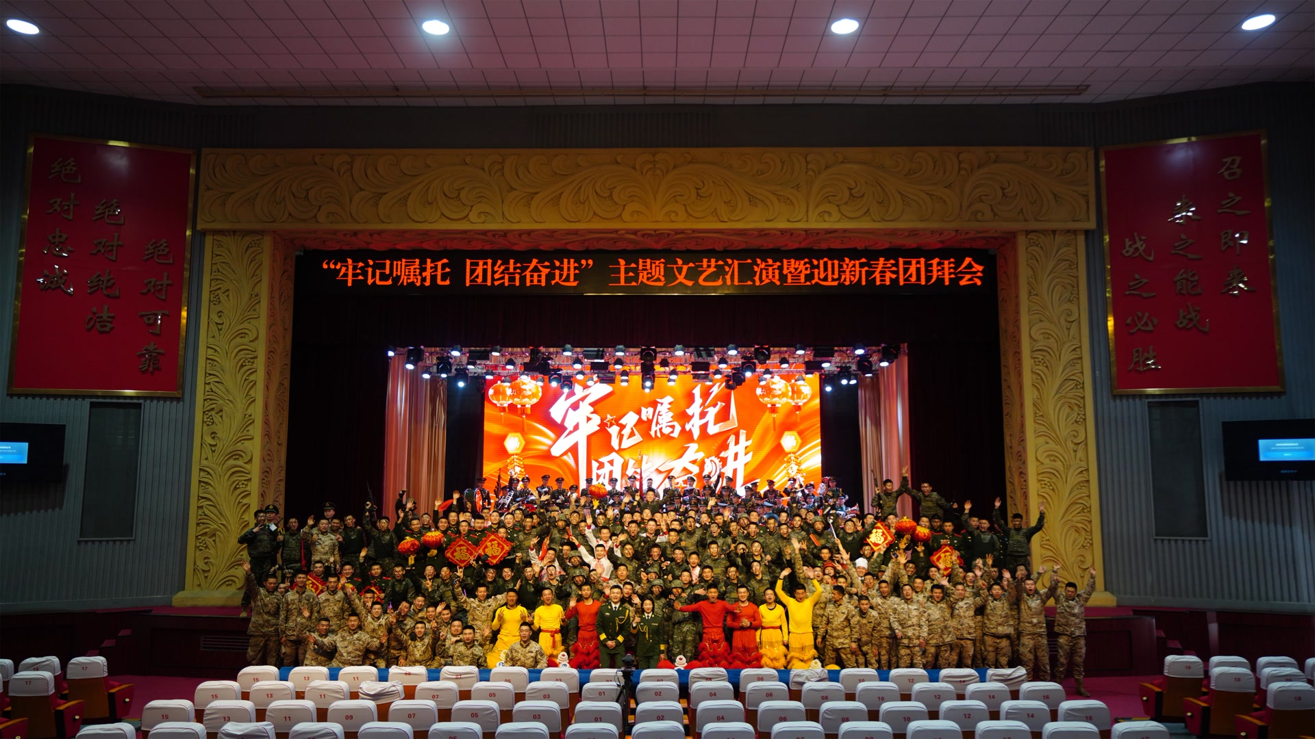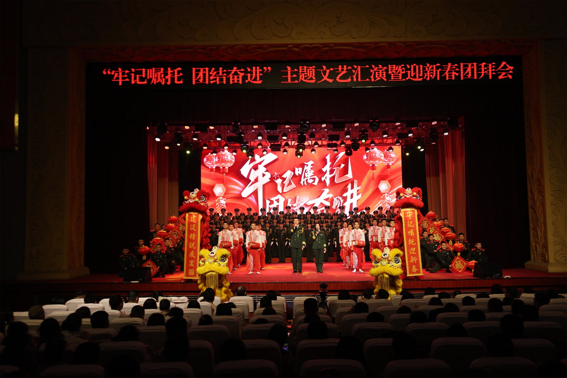 战鼓声声催快马,军旗猎猎启新程。近日,武警北京总队机动某支队隆重举办“牢记嘱托,团结奋进”主题文艺汇演暨迎新春团拜会,全体官兵欢聚一堂、共贺新春,在激情澎湃、精彩纷呈的文艺盛宴里,铸牢忠诚底色,扛起使命担当,以昂扬向上、奋发有为的姿态,喜迎丙午马年新春的到来。
